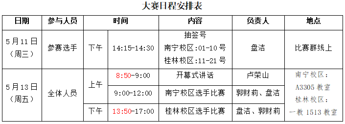 分校区现场比赛:南宁校区上午比赛,桂林校区下午比赛