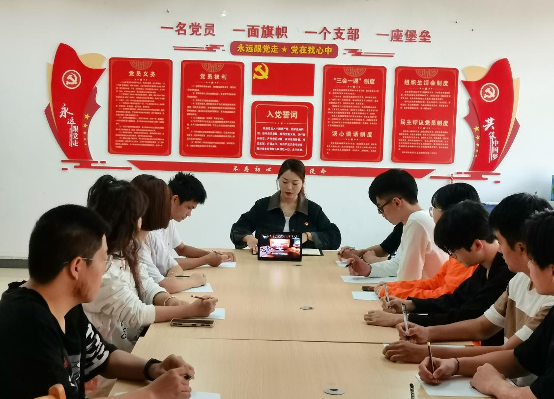 为着力抓紧抓实支部党员教育,紧跟思想,2022年10月11日,我院第三党支部组织开展“红色微课堂”主题教育支部大会。会议由支部书记张妮同志主持,在校生全体党员参加。