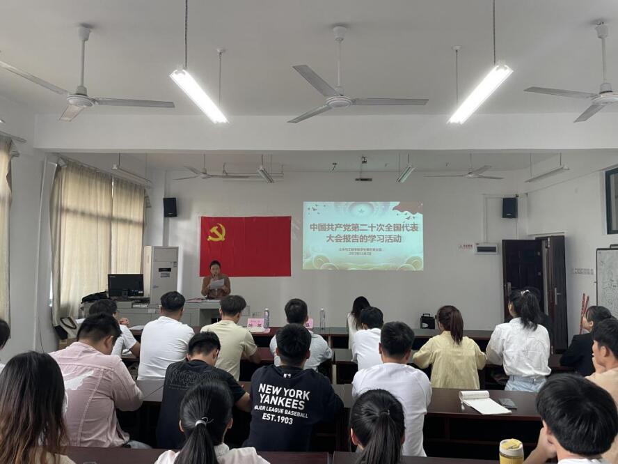为进一步贯彻落实支部党员学习党的二十大会议精神,11月2日下午,土木与工程学院学生第五党支部于2205教室组织开展了中国共产党第二十次全国代表大会报告的学习活动,本次学习活动由我院学生第五党支部支部书记主持。