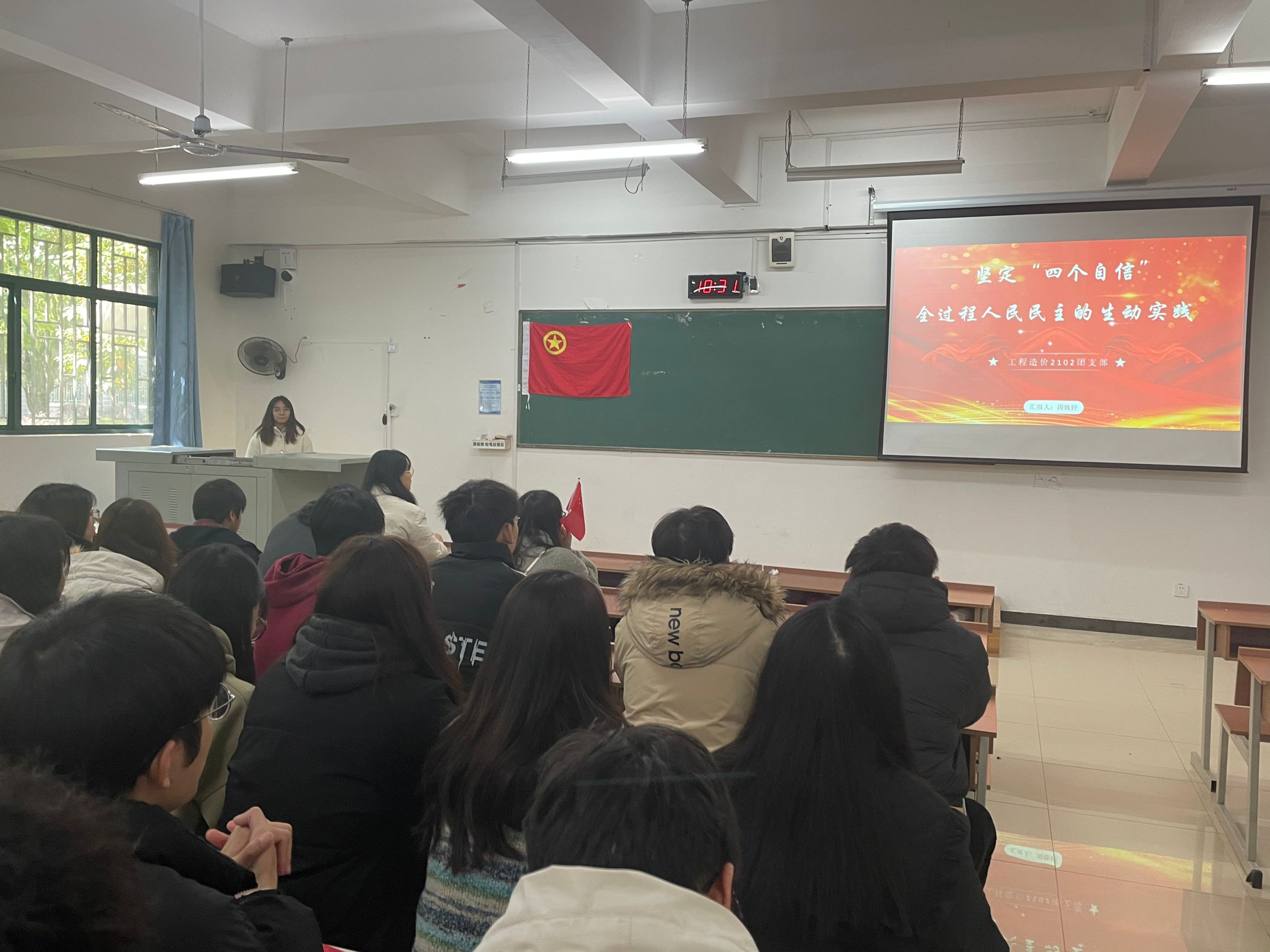 为充分发挥团组织教育青年的功能,进一步加大对新时代青年的培养教育力度,引导青年大学生坚定不移听党话,跟党走。3月11日上午,工程造价2102班于1115教室召开坚定“四个自信”主题团日活动。