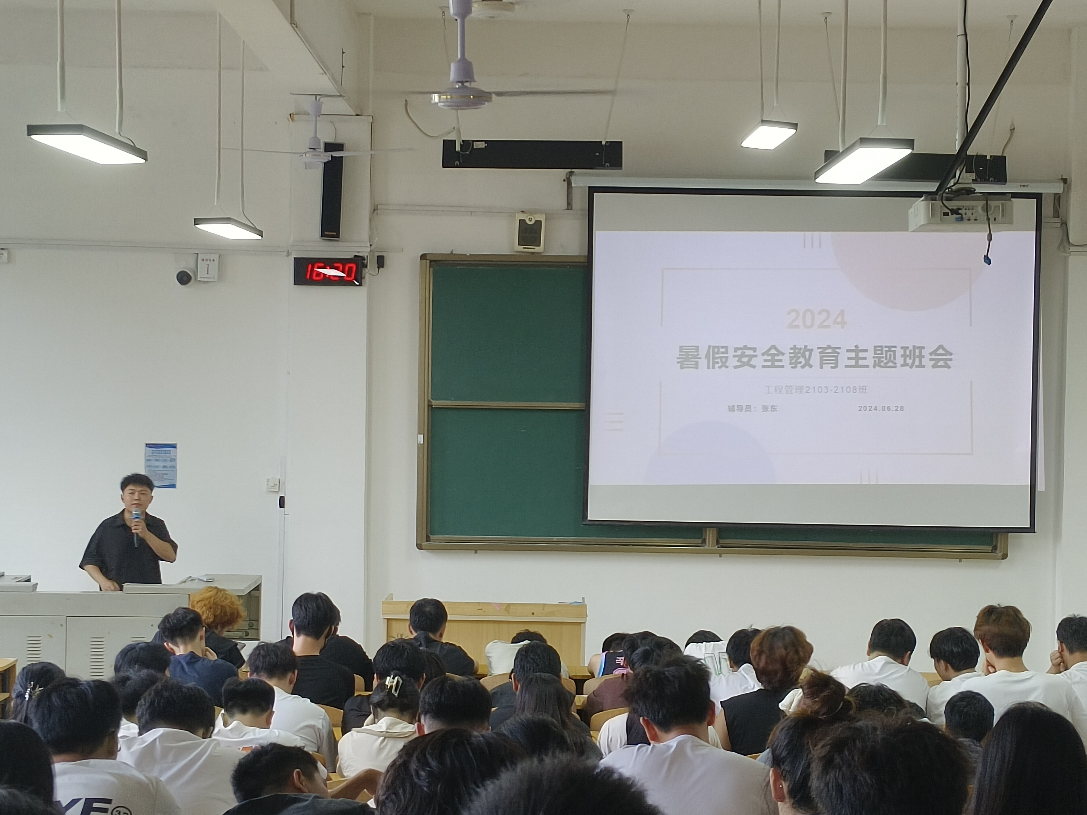 为了提升学生暑假期间的安全意识,助力学生健康成长,6月28日下午,工程管理2103-2108班全体成员在4201召开了暑假安全教育主题班会,本次班会由辅导员张东主持。