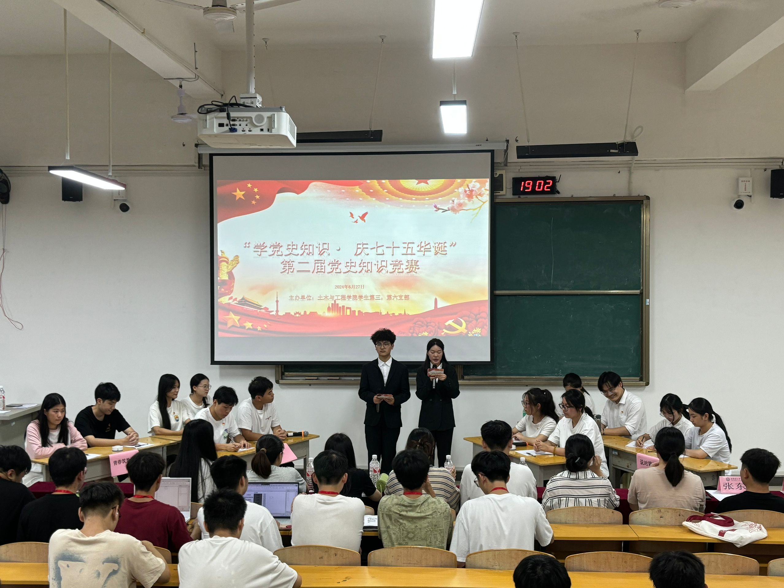 为深入学习宣传贯彻党的二十大精神,进一步引导广大党员准确把握、认真领会党的二十大精神实质和丰富内涵,6月27日晚,土木与工程学院学生第三、六支部主办“学党史知识,庆七十五华诞”党史知识竞赛决赛在4501教室举行。