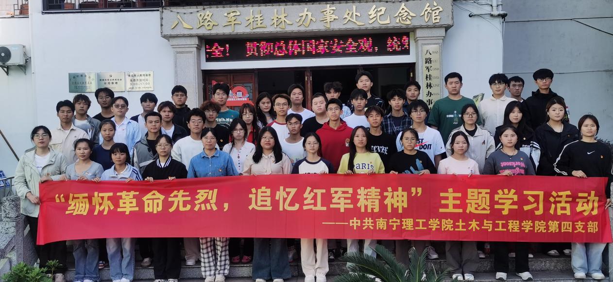 为深入学习党的二十届三中全会精神,深刻领悟习近平总书记关于弘扬伟大长征精神的重要要求,2024年10月25日,土木与工程学院学生第四党支部组织开展了一场以“缅怀革命先烈,追忆红军精神”为主题的学习活动,前往八路军桂林办事处纪念馆进行参观学习。