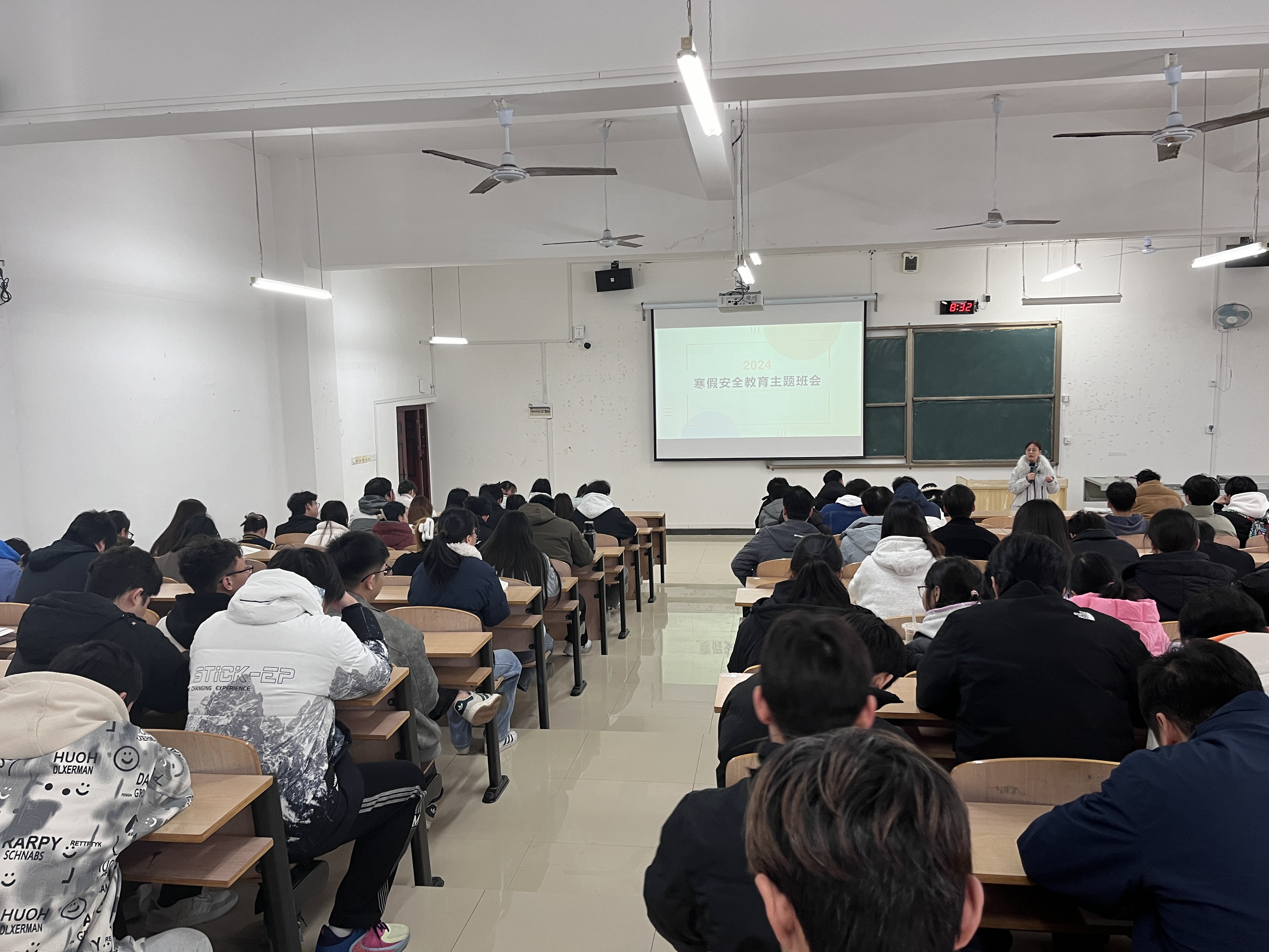 首先,辅导员武丽俊说明了2024年寒假的放假安排,包括离校时间、开学时间,告知学生安排好假期出行计划,同时提醒学生假期期间及时进行成绩查询。
