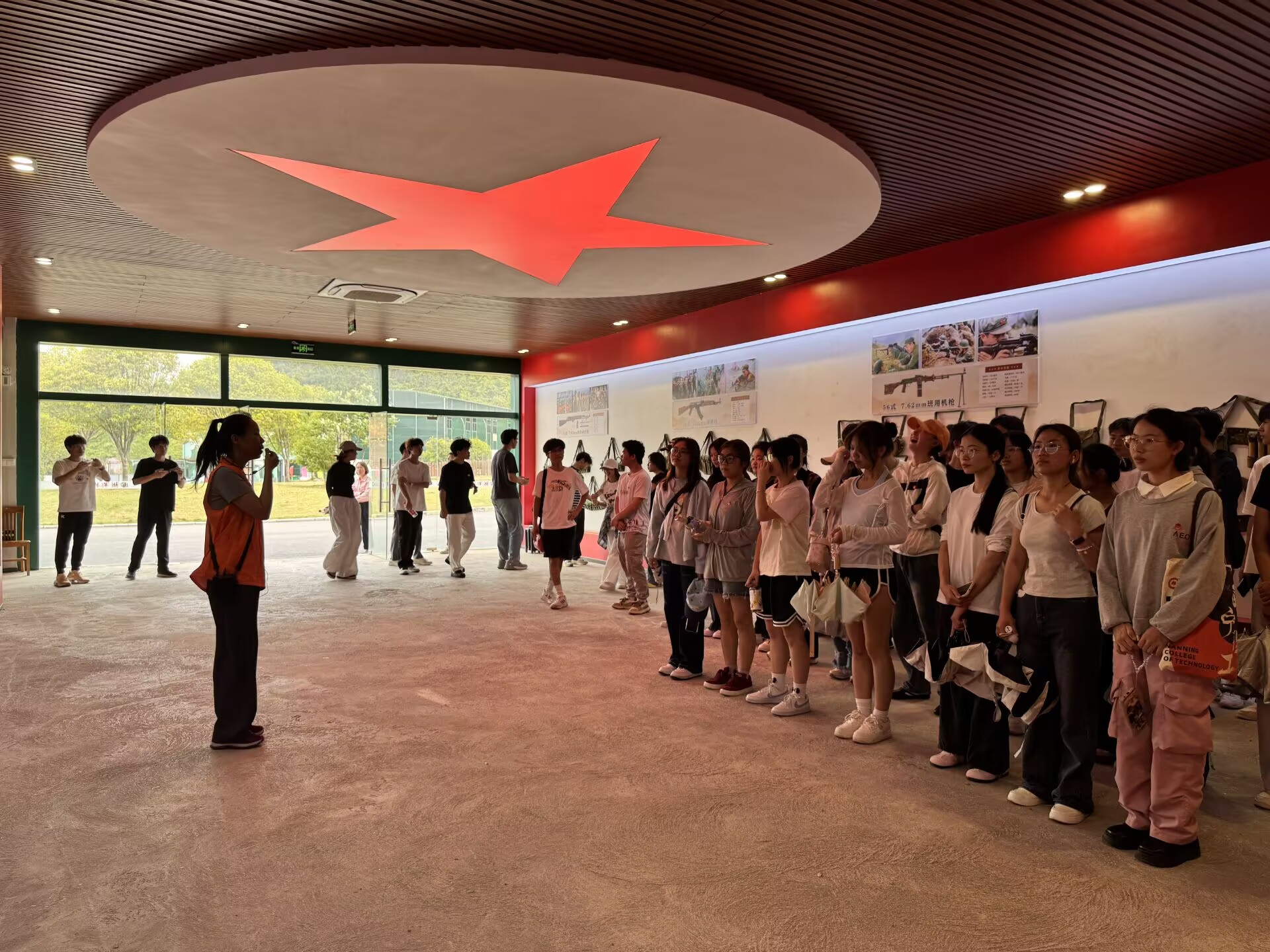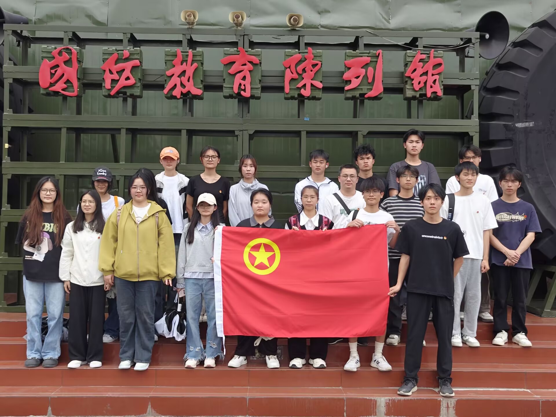 仪式结束后,青年团员们有序参观国防教育陈列馆。通过园区讲解员绘声绘色的讲述,大家了解了更多关于当地的军事历史文化。陈列的历史文物、图文史料及多媒体影像,大家深入了解了革命先烈的奋斗历程与崇高精神。锈迹斑斑的军用水壶诉说着长征路上的艰辛,泛黄的军装补丁记录着艰苦卓绝的岁月,精密的发报机铭刻着隐蔽战线的惊心动魄。从简陋的步枪到现代化武器装备,从手工缝制的草鞋到科技感十足的作战服,每一处细节都生动展现了人民军队从胜利走向胜利的壮阔历程,更彰显着我国国防事业从追赶到超越的伟大跨越。在户外展区,同学们有序参观了战斗机与坦克等大型军事装备。大家认真阅读装备旁的文字介绍,仔细观察武器的构造细节。一名同学说:“看到这些实物,让我进一步意识到祖国的强大,我们也会通过学习加速成长,为祖国的发展建设贡献力量。”