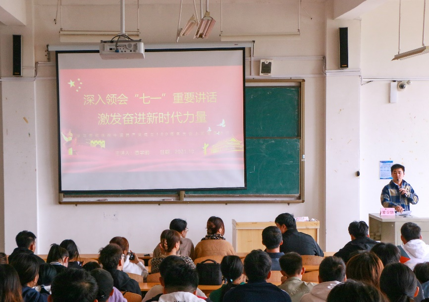 10月17日上午的培训会邀请到团委老师覃学鹏老师为大家进行授课。团委老师覃学鹏老师上台宣讲“七•一”精神,带领大家深入领会“七•一”重要讲话精神,砥砺初心使命,激发奋进新时代力量。同学们认真学习贯彻落实总书记讲话精神,从中汲取强大的真理力量、思想力量、实践力量,不断夯实思想基础,在实践中勇敢担当,坚持理想信念,永远跟党走。