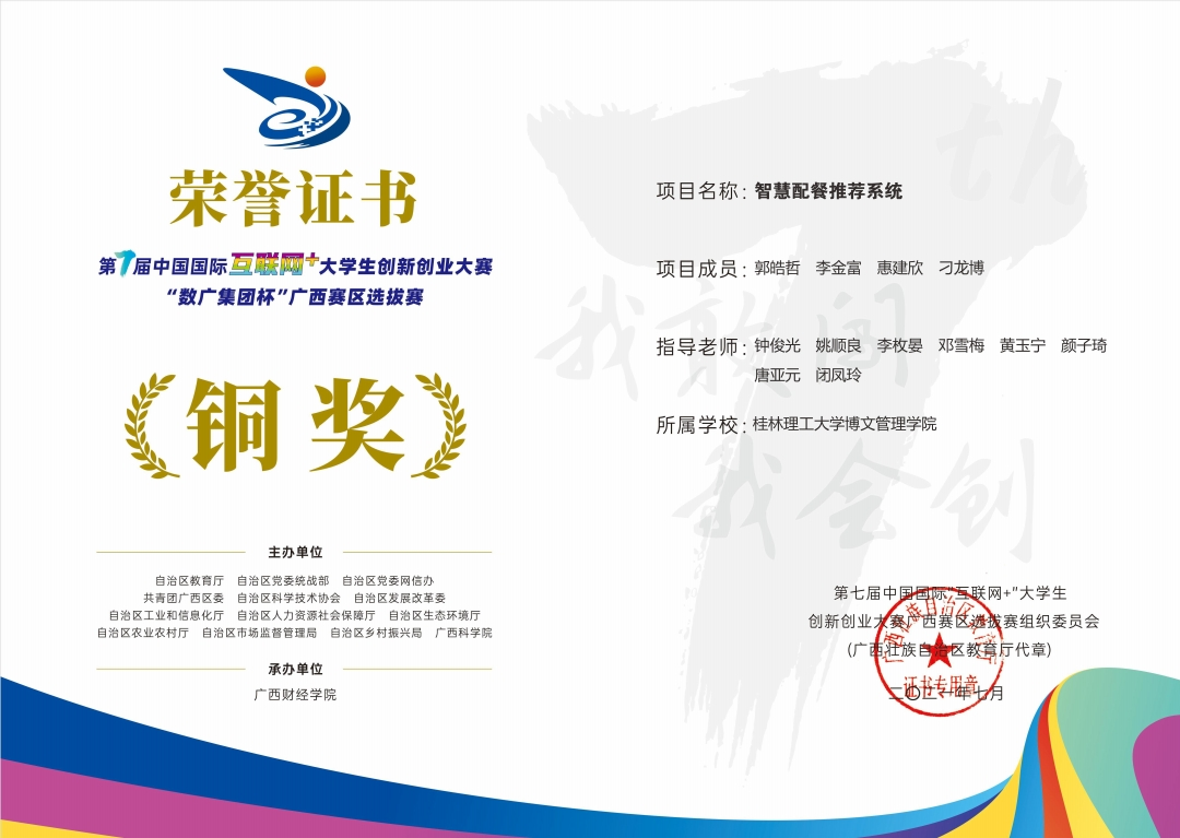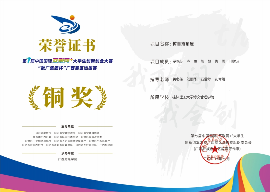 近日,第七届中国国际“互联网+”大学生创新创业大赛“数广集团杯”广西赛区选拔赛落下帷幕,共有92所院校、近10万个项目、44.42万人次报名参赛。与上届相比,参赛项目数和参赛人数大幅度提高,强手如林,竞争异常激烈。我校学子在今年的比赛中表现优异,喜获佳绩。本届大赛我校共获得铜奖六项。