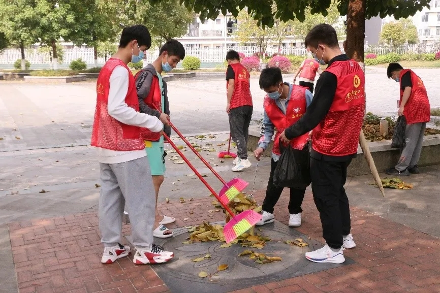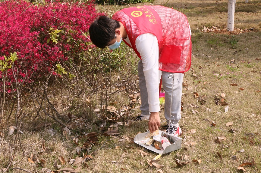 同学们或是用扫帚扫起沉积的落叶,或是用手捡起路边的垃圾。一个同学拿着扫帚,另一个就用工具盛装,他们在互帮互助中感受集体的力量。林间小道、草坪深处、花坛旁边均已不见塑料袋、瓜皮纸屑的踪影。没过多久,整个校园焕然一新,“美丽校园”志愿清扫活动在洁净的校园中结束。