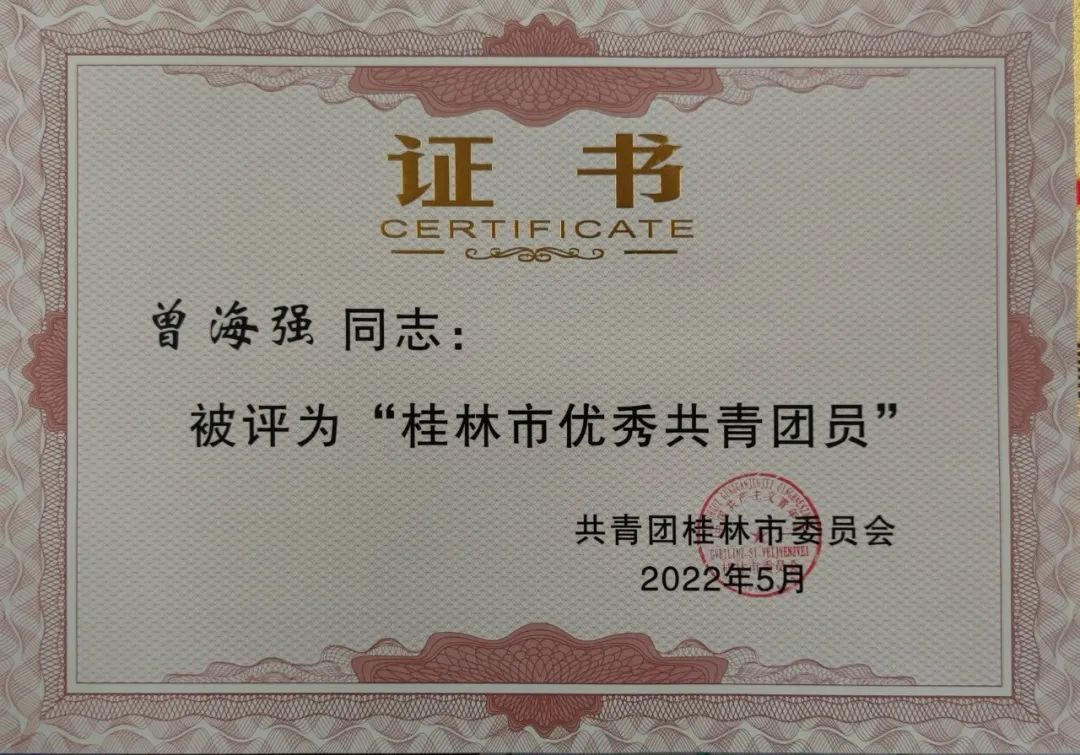 据悉,本次表彰共评选86名“桂林市优秀共青团员”称号,99名“桂林市优秀共青团干部”称号,29个“桂林市五四红旗团委”称号,58个“桂林市五四红旗团支部(总支)”称号。