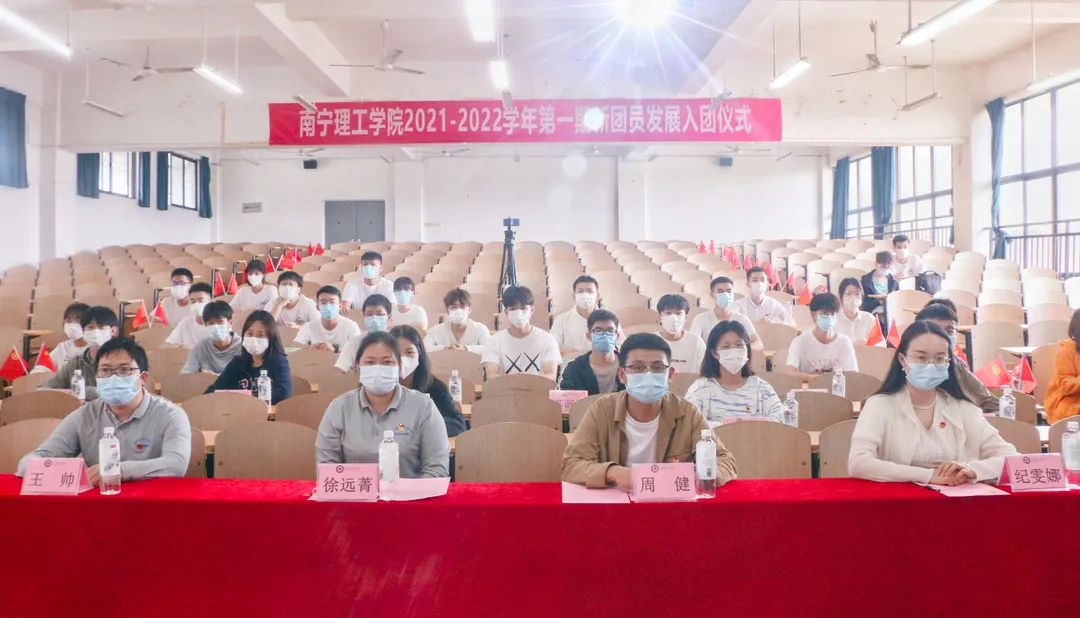 为深入贯彻习近平总书记关于青年工作的重要思想,迎接党的二十大胜利召开,结合庆祝中国共产主义青年团成立100周年、五四运动103周年,团结带领全市广大团员青年永远跟党走、奋进新征程,进一步激发广大团员、青少年爱党爱国热情,增强团员的先进性、光荣感和责任感,提升共青团的凝聚カ和吸引力。5月12日,我校举办2021—2022学年第一期新团员发展入团仪式,桂林校区在4501教室举行,东盟校区在A3218举行。团委副书记吴火霞,土木与工程学院分团委书记徐远菁,商学院分团委书记陈柏贤,艺术与传媒学院分团委书记周健,艺术与传媒学院分团委书记罗文俊,文理学院分团委书记覃蓝天,文理学院分团委书记王帅,团委老师覃学鹏、纪雯娜出席本次活动,入团仪式由团委老师覃学鹏主持。此外,校团委学生副书记,各二级学院分团委学生副书记,各二级学院分团委组织部部长及第一期新团员参加此次活动。