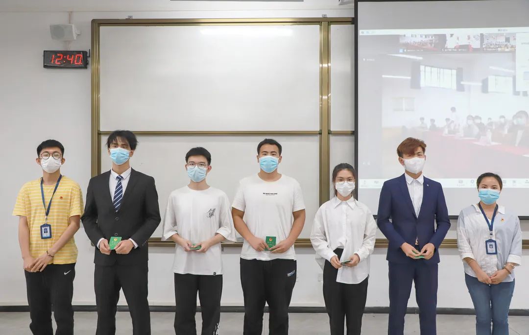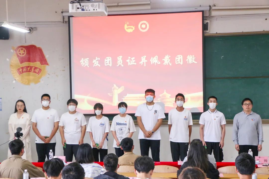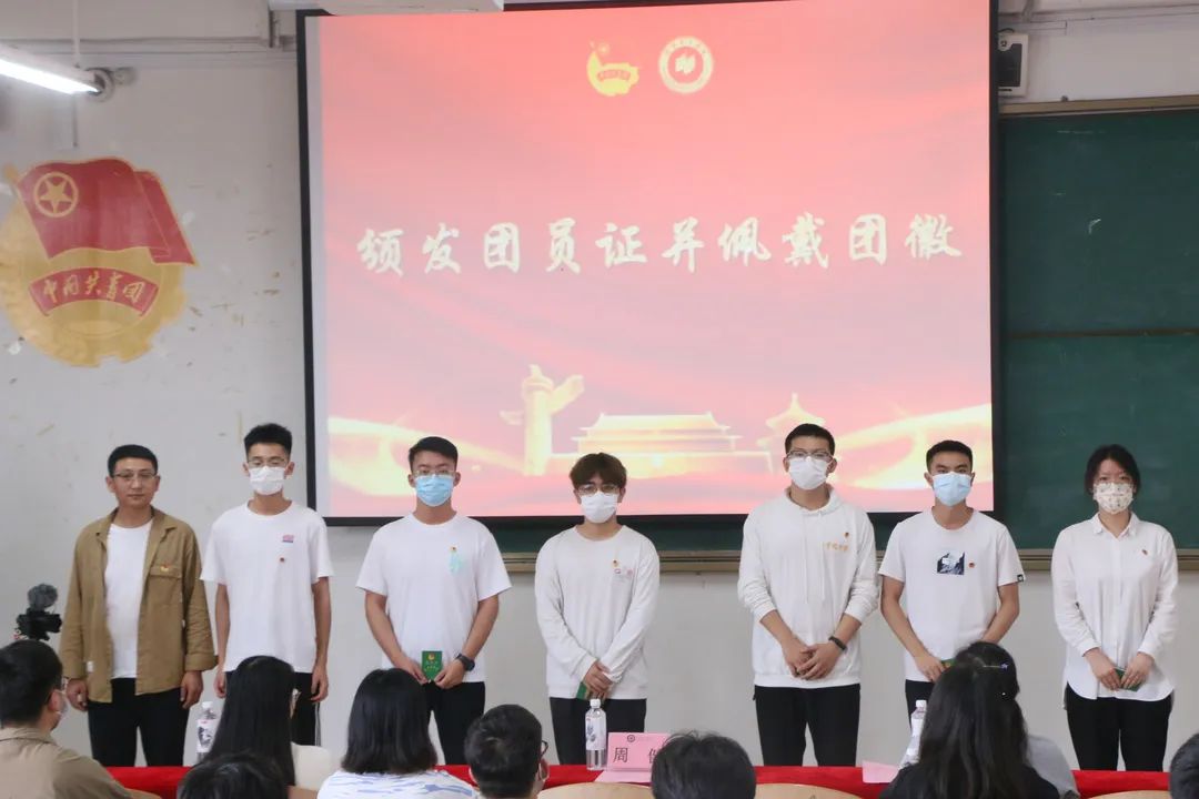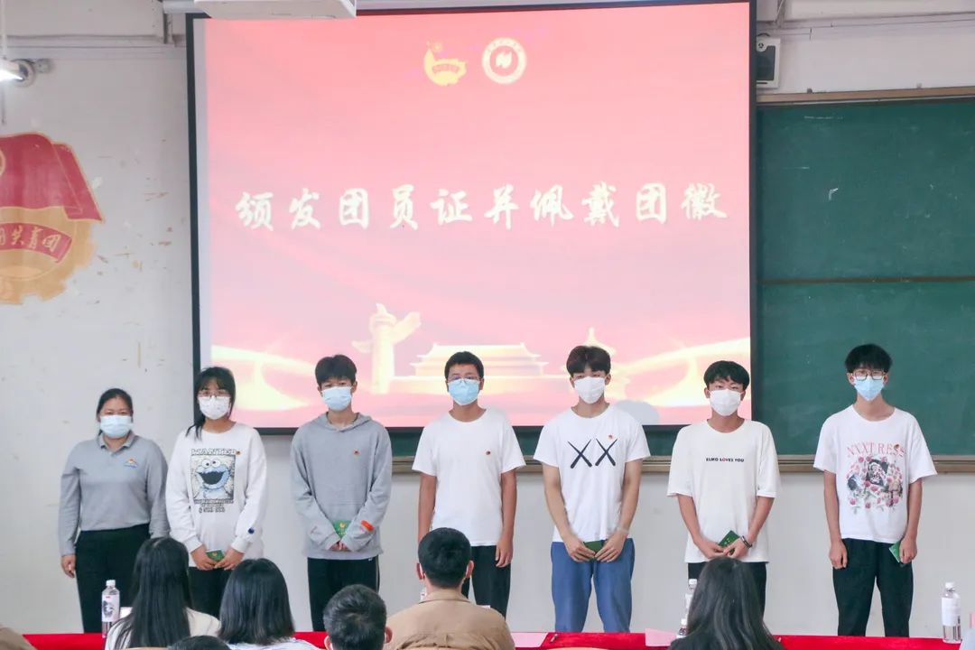 桂林校区王帅,纪雯娜老师为第三组团员颁发团员证,佩戴团徽
