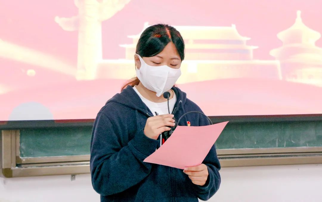 王晓璇同学首先表示希望大家一同承担团员责任,为更多同学起到模范带头作用。之后王晓璇同学还分享了三点经验:一是严守克己,树立榜样。青年要自觉听从党的召唤,担当使命任务,作为一名共青团员要始终成为组织中国青年团永久奋斗的先锋力量;二是砥砺拼搏,励志笃行。以积极上进的态度学习,积极参加团日活动,为团组织建设而学习;三是牢记使命,不负韶华。不忘初心,践行使命,成为时代先锋、民族脊梁为创建中国特色社会主义国家的目标而奋斗;最后,王晓璇同学表示请大家牢记:我们是一名共青团员,我们要永远保持共青团员的荣誉称号。