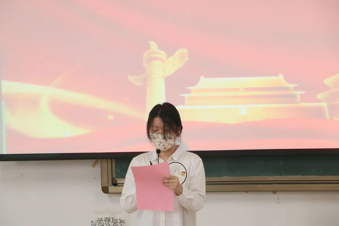 团委副书记吴火霞,首先对各位同学加入中国共产主义青年团表达了衷心祝贺。其次对同学们提出了三点要求:一是守正出新,笃志敏行。作为一名共青团员要恪守正道,要有创新精神,将个人理想抱负与全民族共同理想相一致,与祖国发展历史洪流相融合;二是志存高远,脚踏实地。大家要担负起历史所赋予同学们的光荣使命,立长志,担大任为将来奉献社会打下坚实基础;三是坚定信念,勇毅前行。青年建设共产主义社会远大理想,实现中国梦,完成历史接力赛,时代把历史责任赋予青年,青年定当在民族复兴赛道上奋勇前行。最后,团委副书记吴火霞表示不负时代,不负韶华,跑出当代青年最好成绩,不必四处看,用实际行动表明自己无愧于“共青团员”这个光荣称号。