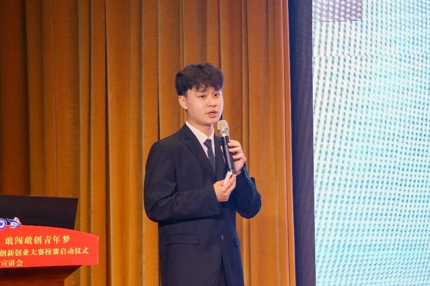 在项目宣讲环节中,5名大创项目负责人依次上台进行了精彩的宣讲,展现了我校创新创业风采。