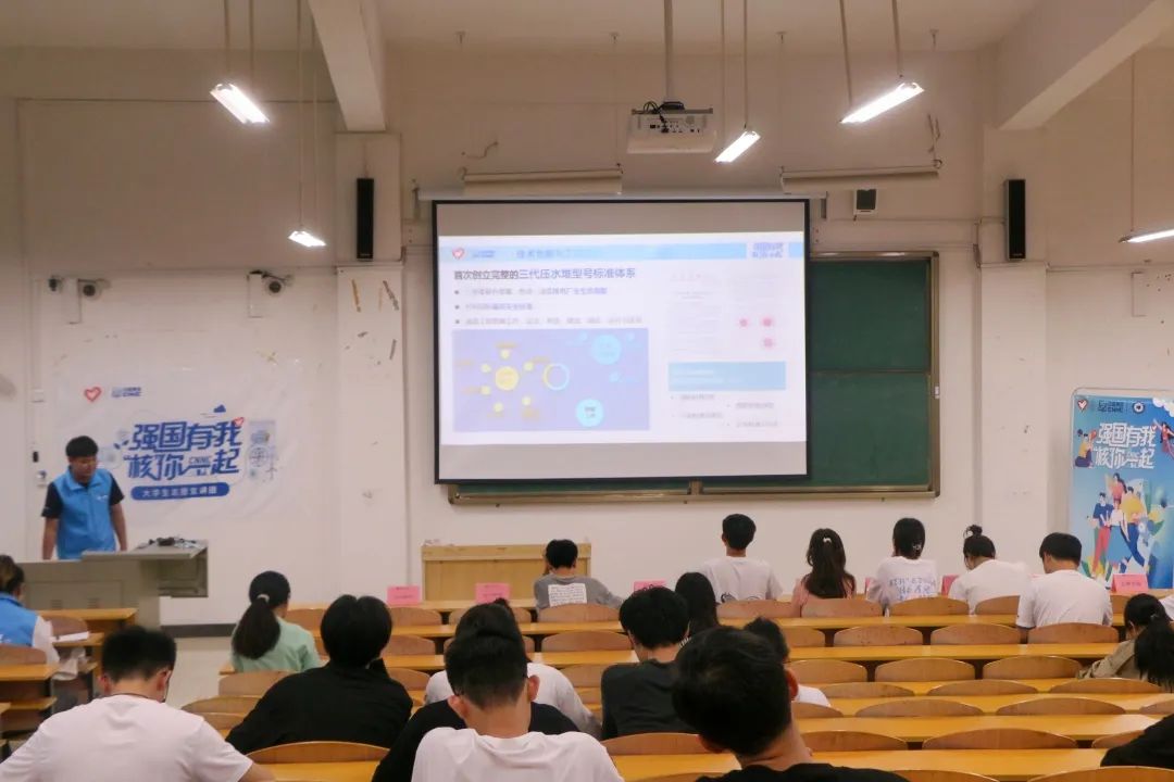 本次宣讲活动通过观看视频和授课的方式进行宣讲。宣讲员们围绕神奇的核科技展开宣讲,走进中国核工业、党领导下的中国核工业发展历程、中国核工业精神谱系,“华龙一号”中国制造展开宣讲,使同学们在认识碳达峰碳中和目标和重大意义的基础上,更加深刻地理解绿色核能发展理念。