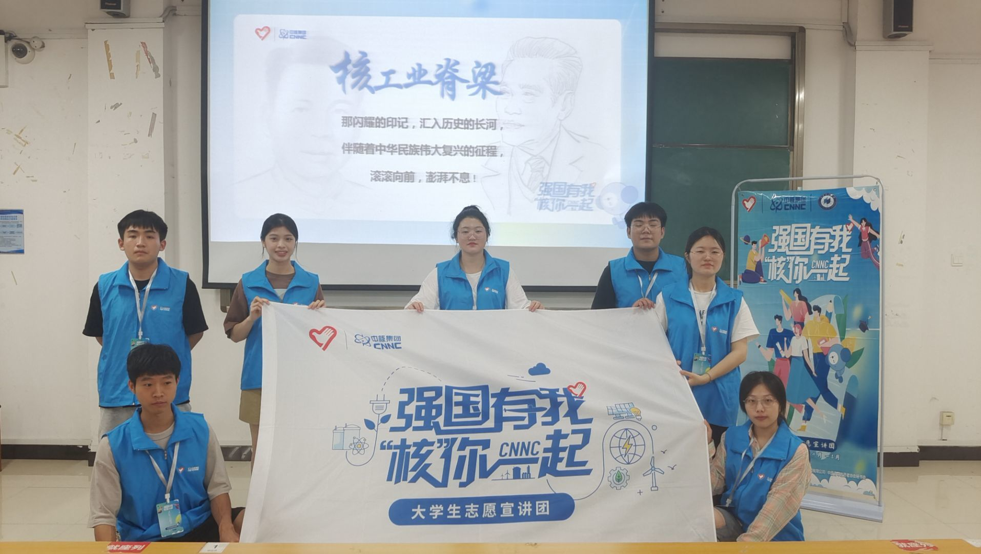 为深入宣传贯彻习近平生态文明思想,引导社会公众和广大青年学生理解和把握实现碳达峰,理解和把握推动能源革命,深刻认识碳达峰碳中和目标的重大意义,践行简约适度、绿色低碳、文明健康的生活方式,以实际行动迎接党的二十大胜利召开,团中央青年志愿者行动指导中心、中国核工业集团有限公司、中国青年志愿者协会秘书处决定联合开展“强国有我 ‘核’你一起”大学生志愿宣讲活动。我校于6月14日、6月16日举行宣讲活动。