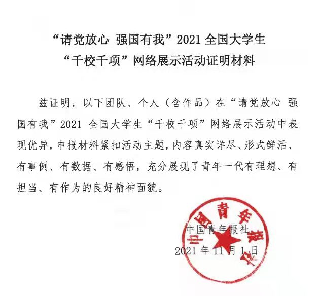 喜讯|我校成功入选“请党放心 强国有我”2021全国大学生“千校千项”网络展示活动最终名单