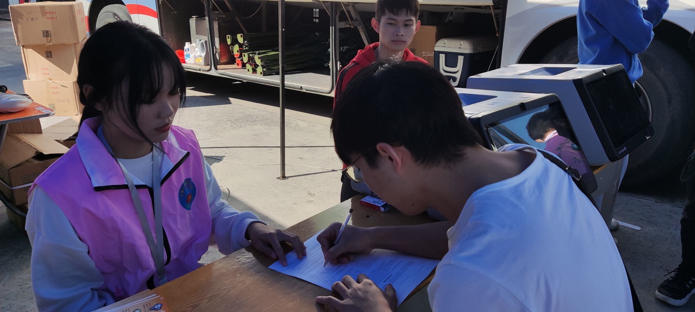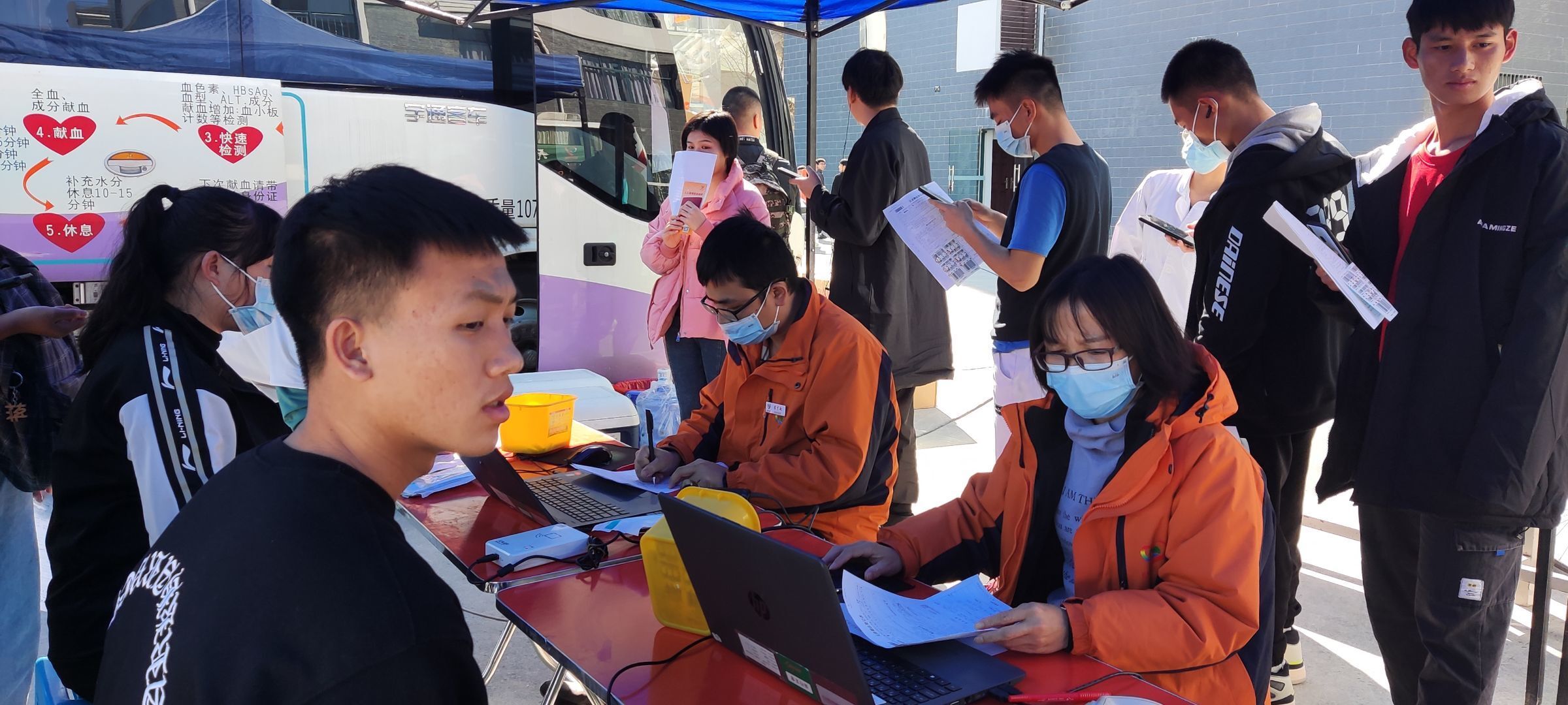 血让我们血脉相连,爱让我们为生命加油——我校无偿献血活动圆满结束。献血是爱,是勇气,是关怀。12月1日早上11:00由我校青年志愿者协会举办的“大爱无疆,血脉相连”无偿献血活动于二栋教学楼前广场处正式拉开帷幕。此次爱心献血活动得到了广大师生的大力支持,师生们积极踊跃地参与无偿献血,为挽救他人奉献出了自己的微薄之力。