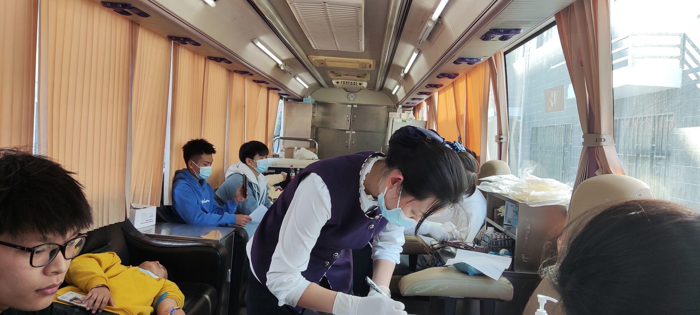 活动当天,在志愿者们的引导下,同学们有序登记、验血、抽血并进行观察休息。献血过程中志愿者们积极配合工作人员,耐心解答同学们的问题,并以对话的方式缓解同学们的紧张情绪。志愿者们在引导献血的同时也给献血者递糖水,细心提醒献血过程前后需要注意的事项。那些初次献血的同学,他们或有一些胆怯,或有一些担忧,但他们还是勇敢坚定地献出自己的一份爱心。他们将自己的爱心付诸于行动,这种精神值得每一个年轻人学习、发扬。完成献血的同学们可以领取献血证,除此之外,我们还悉心准备了牛奶和爱心礼品。虽然献出的血是有限的,但是那份爱是无价的。献出一点爱心,增添一份关怀。