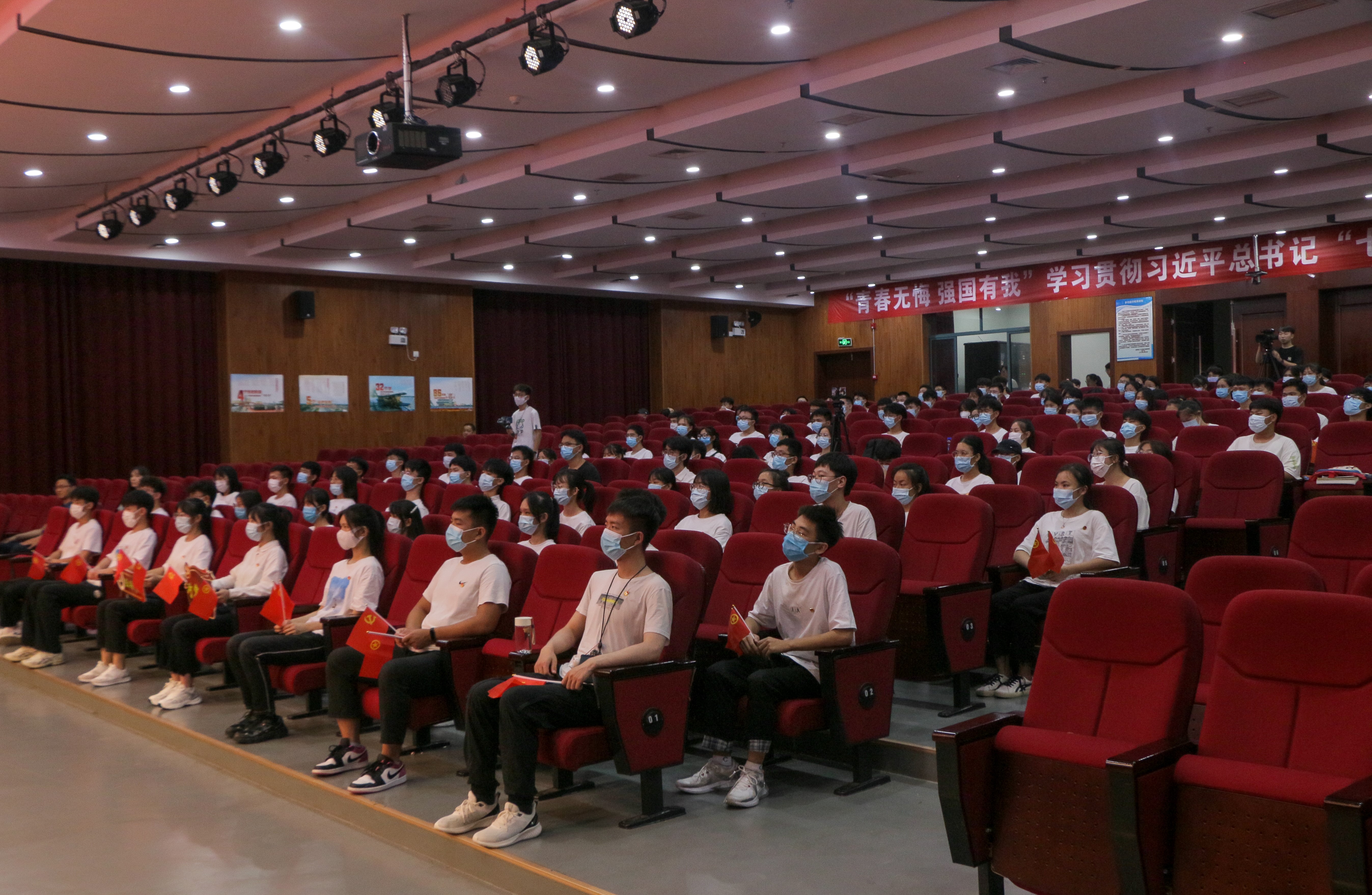 2021年7月1日,我们迎来了中国共产党的百年华诞,100年风雨兼程,100年沧桑巨变,从1921年-2021年,在中国共产党的带领下,中国发生了翻天覆地的变化,习近平总书记指出:“我们党的一百年,是矢志践行初心使命的一百年,是筚路蓝缕奠基立业的一百年,是创造辉煌开辟未来的一百年。”为学习贯彻习近平总书记“七一”重要讲话精神,我校在9月14日晚于一栋报告厅开展了此次示范性主题团日活动。由覃学鹏老师带领着同学们一起回顾党的百年奋斗取得的“四个伟大成就”,一起去感悟党的初心和使命。