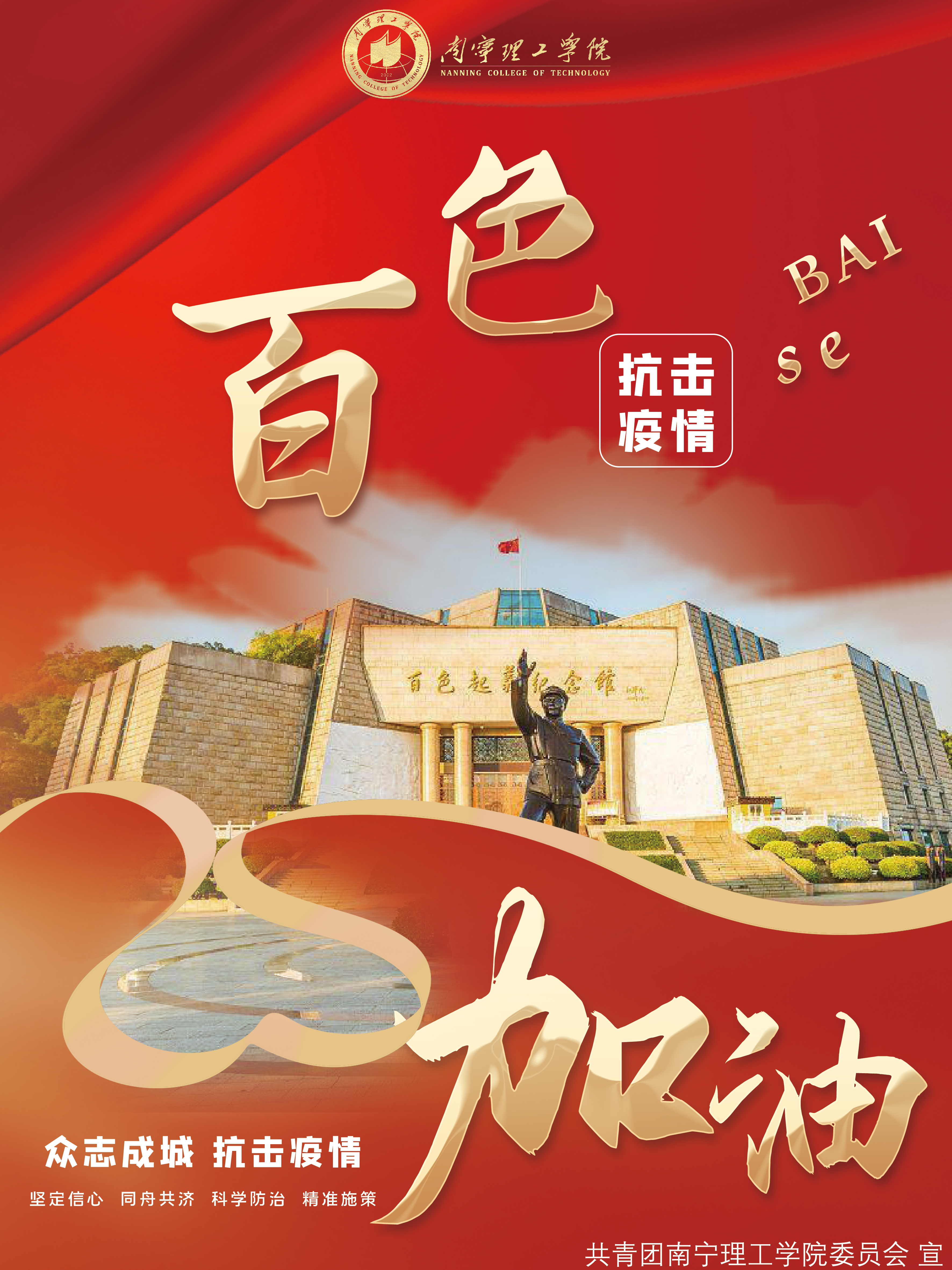老师们、同学们,让我们立即行动起来,不做旁观者、不当局外人,以对自己、对家人、对社会高度负责的态度,不论你身处何处,让我们一起为百色加油,用爱和温暖与抗疫同行!