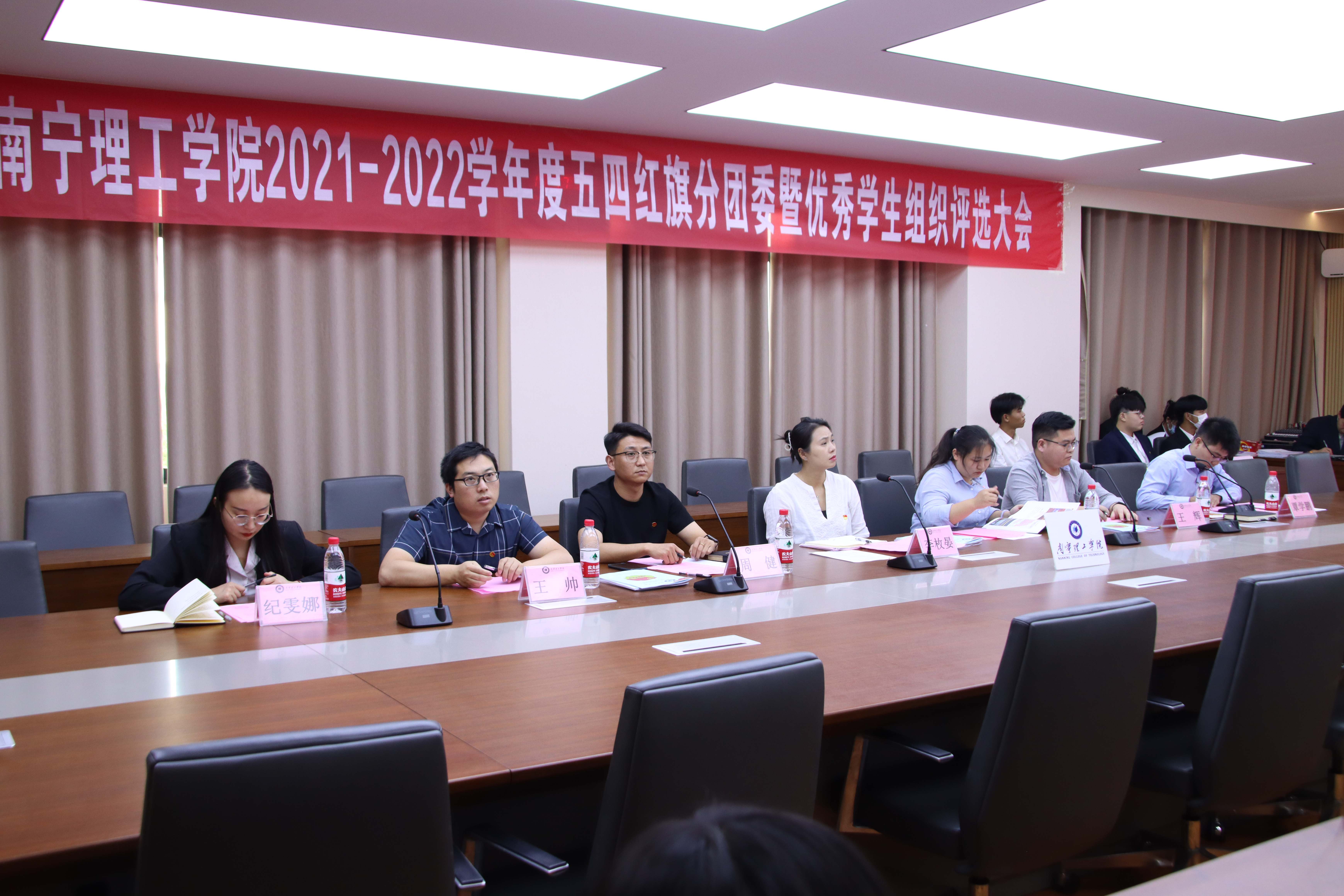 为进一步加强团学组织的自身建设,发挥基层组织的先进作用,形成一种奋进向上的良好作风,充分发挥分团委、优秀学生组织的模范引领作用。我校于2022年10月17日在桂林雁山校区3324会议室,南宁东盟校区图书馆619会议室共同举办2021-2022学年度“五四红旗分团委”暨“优秀学生组织”评选大会。学工工作部(处)部(处)长李枚晏,学工工作部(处)副部(处)长孙宝会,团委书记朱新辉,团委副书记吴火霞,土木与工程学院分团委书记徐远菁,商学院分团委书记陈柏贤,艺术与传媒学院分团委书记周健,艺术与传媒学院分团委书记罗文俊,信息工程学院分团委书记王辉,文理学院分团委书记覃蓝天,文理学院分团委书记王帅,大数据与人工智能学院分团委书记李江燕,团委老师纪雯娜参加本次评选大会。大会由团委老师覃学鹏主持。