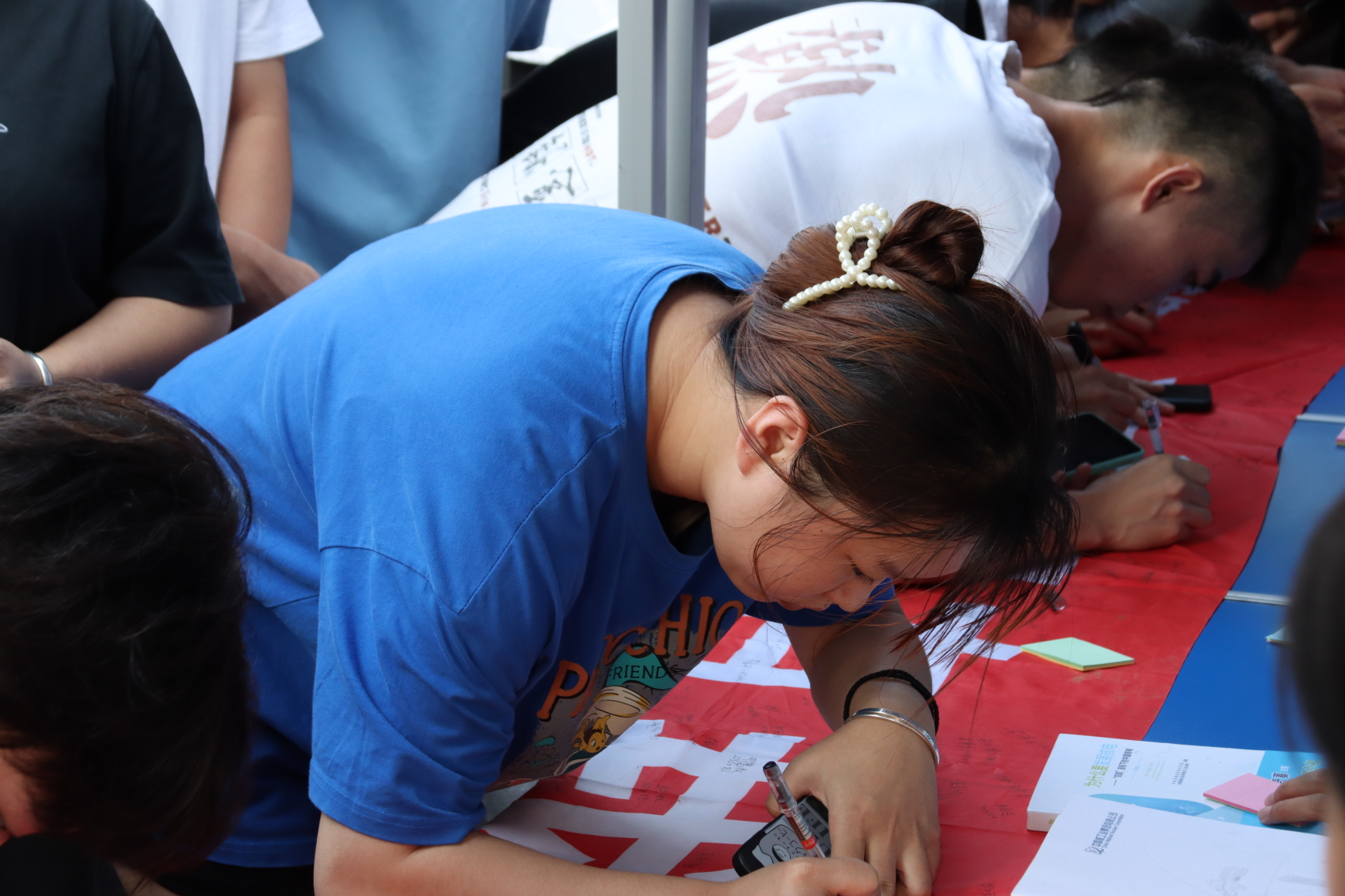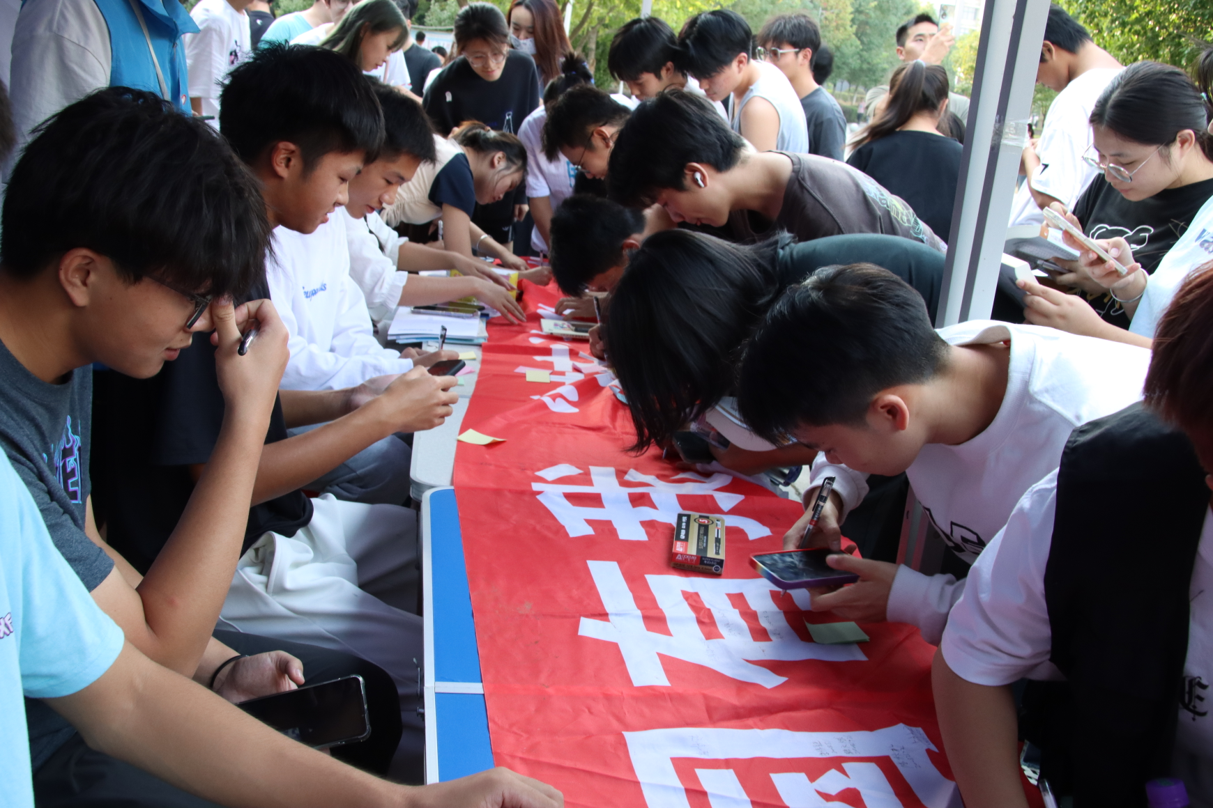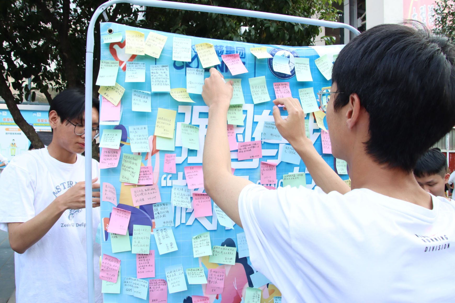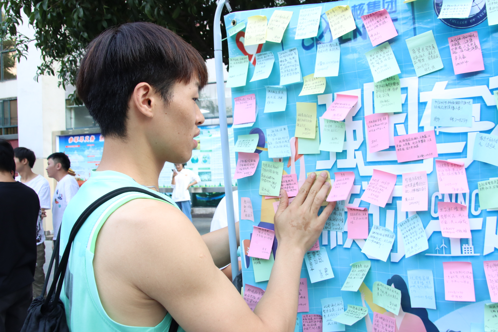 为引导广大青年学生理解和深刻认识碳达峰碳中和目标对于我国发展的重要意义,贯彻生态文明思想,让大学生更进一步了解当今国家发展,激起大学生对于坚持碳达峰和完成碳中和的昂扬斗志。我校于10月25日下午在一食堂前举办“强国有我,“核”你一起”大学生志愿宣讲活动。通过横幅签名、便利贴写祝福、现场讲解等活动形式向老师和同学们解读碳达峰碳中和、绿色发展、节能减排等知识,普及绿色发展理念和节能降碳知识。