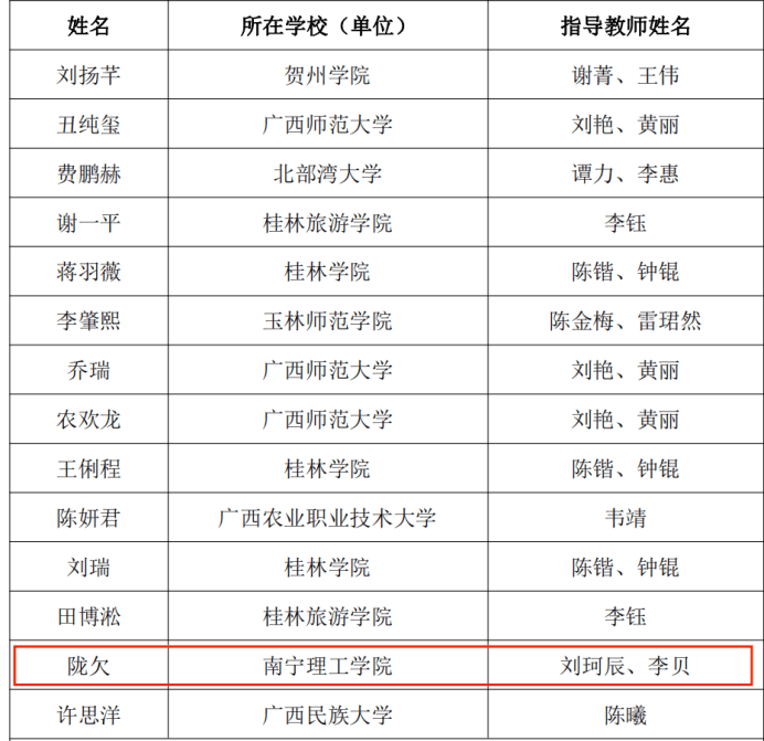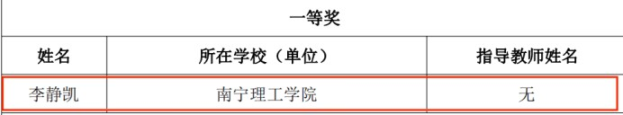 其中我校李静凯老师获得教师三组一等奖;陇欠获同学得大学组三等奖;冯晓晴同学获得大学组优秀奖;易洪康、白小亮同学获得专业集体组优秀奖。在此,向获奖师生表示热烈的祝贺!