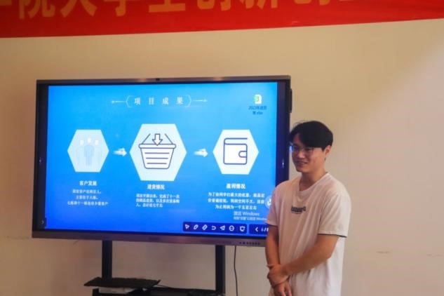 在大创路演的交流展示环节中,各团队负责人通过PPT分别从项目介绍、项目目标、项目进度、项目成果等方面展示各团队在完成大创项目的过程中的经验和成果。