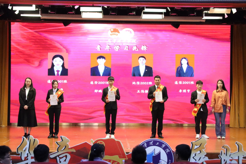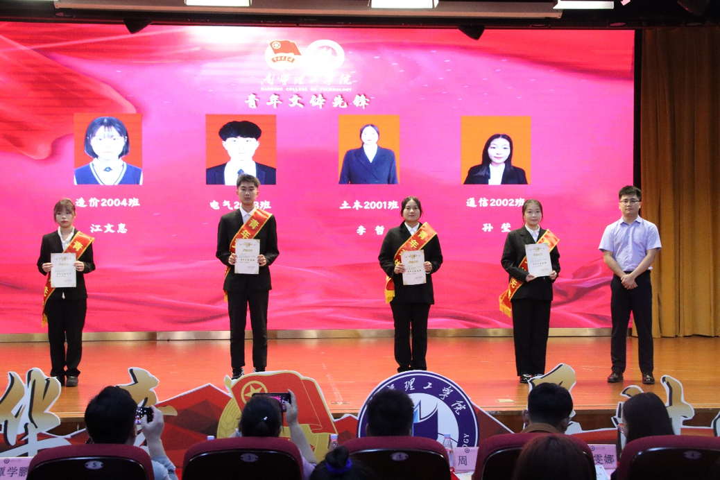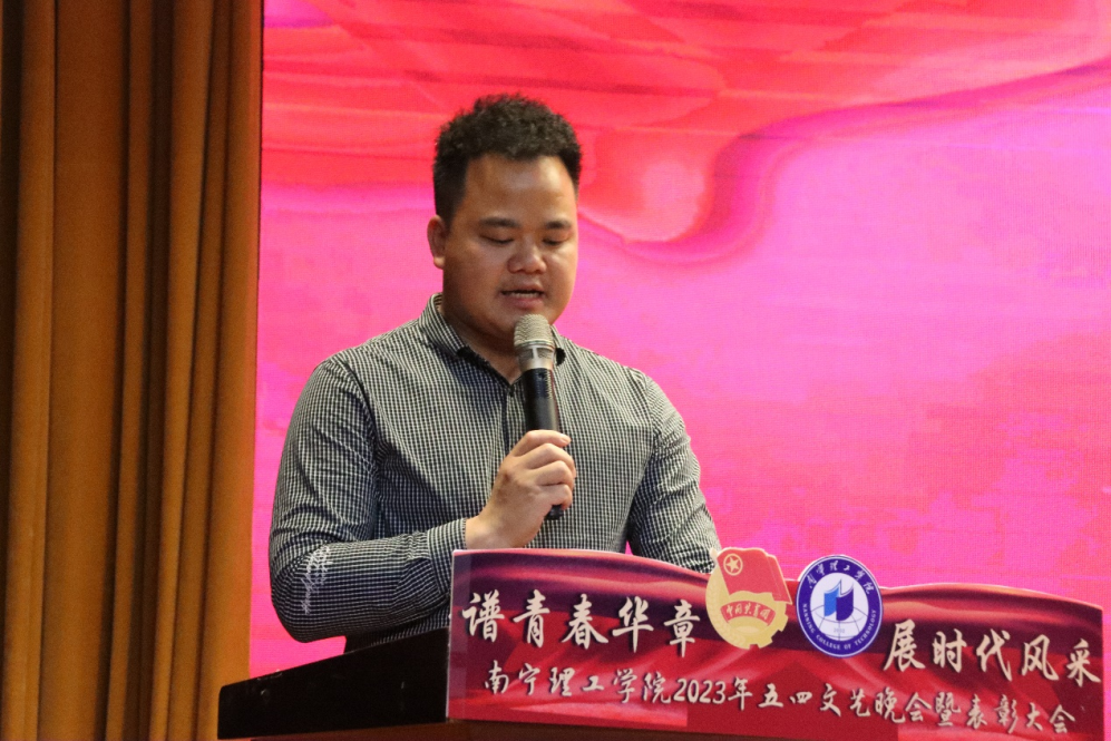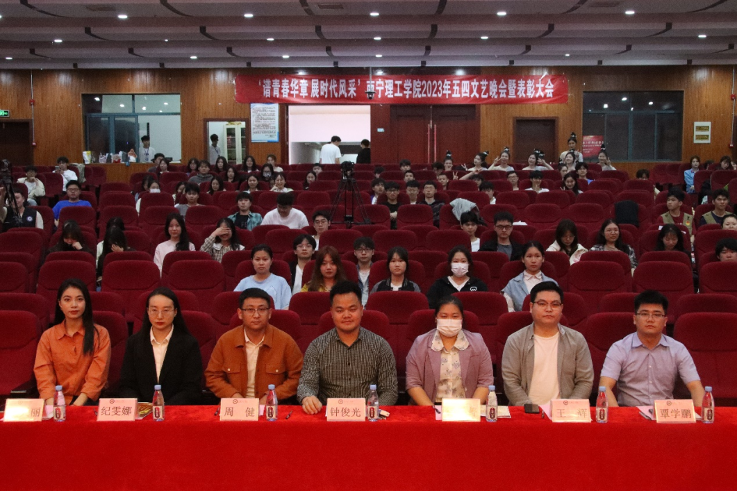 有一种潜力叫青年,有一种成长叫青年,有一种希望叫青年,有一种拼搏叫青年,有一种力量叫青年,有一种快乐叫青年。唱响红歌,追忆岁月,为了丰富校园生活和让同学们了解党的“初心”与“使命”,进一步激发青年学生的爱国情怀,5月13日晚,我校在1626报告厅举办“谱青春华章展时代风采”2023年南宁理工学院五四文艺晚会暨表彰大会,出席的领导嘉宾有团委书记钟俊光, 土木与工程学院分团委书记徐远菁, 艺术与传媒学院分团委书记周健,信息工程学院分团委书记王辉,团委老师覃学鹏、纪雯娜, 形体与舞蹈表演专业教师王天丽。