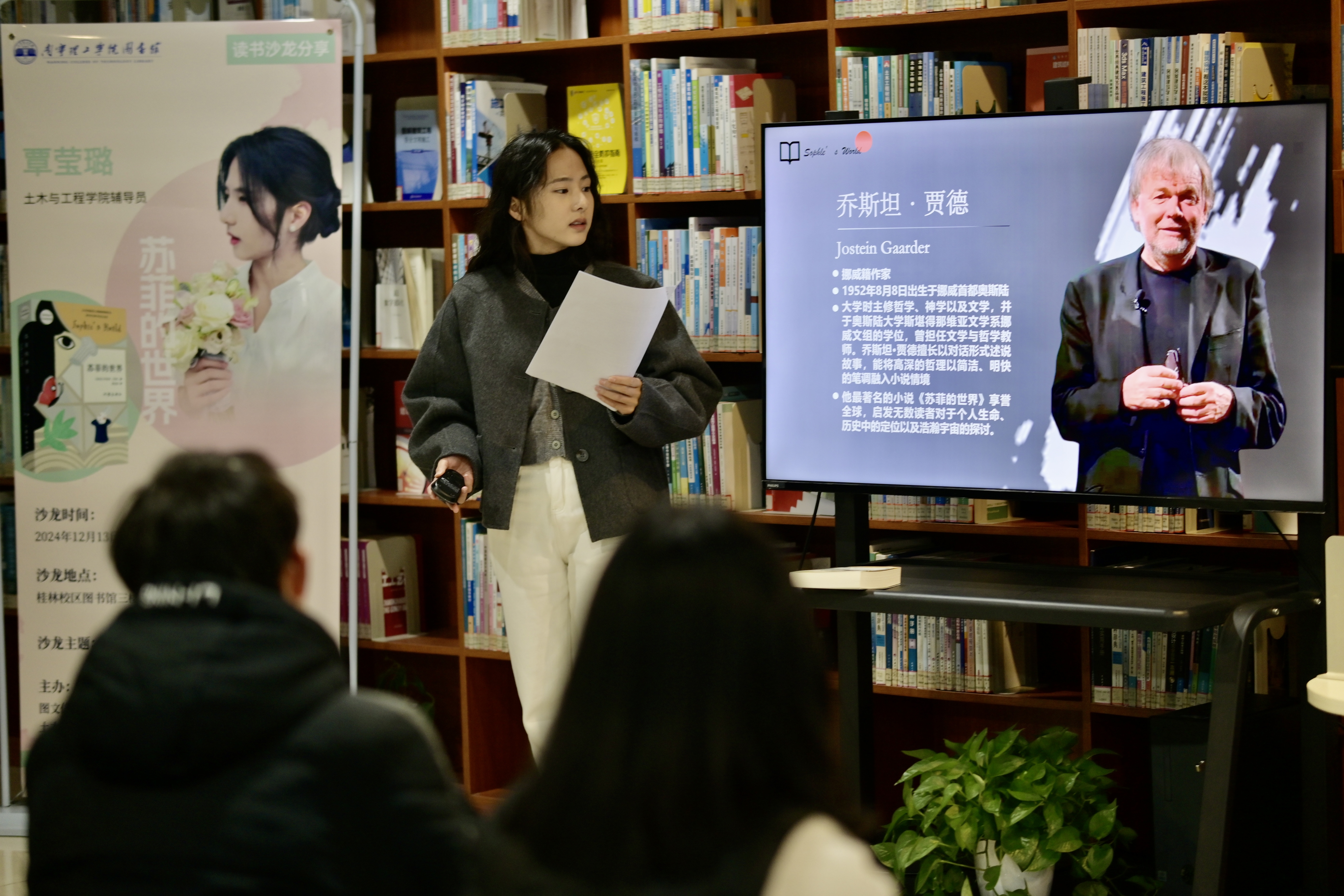为进一步推动学校阅读推广工作,教育引导更多学生走进图书馆,进一步提升自身综合素养,共建书香校园,12月13日晚,图书馆联合土木与工程学院举办了三场读书沙龙活动,邀请土木与工程学院党总支书记助理杨笑宇,辅导员郭雨琪、覃莹璐三位老师老师为学生分享了《不拘一格》、《你当像鸟飞往你的山》、《苏菲的世界》三本图书,来自桂林校区各学院约100多位同学及图书馆相关老师参加了本次活动。