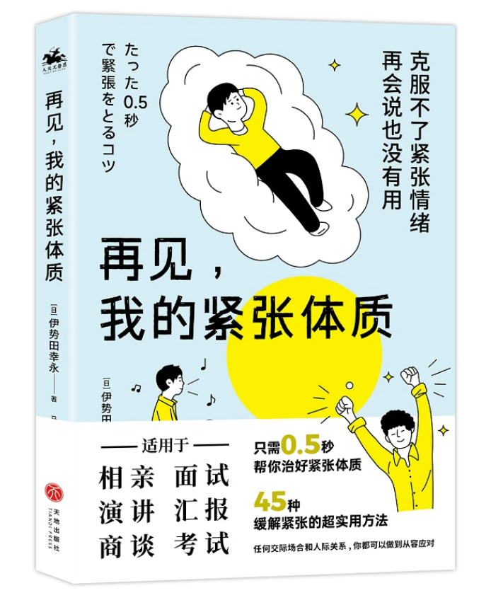 题名:《再见,我的紧张体质》 作者:(日)伊势田幸永 出版社:天地出版社 馆藏地点:桂林雁山校区种本书库、南宁东盟校区图书馆 索书号:B845-49/5 内容简介:本书从心理学和行为学的角度分析了易紧张的原因,并根据不同的场合和情景对应给出了45种有效缓解紧张的小妙招。每个小妙招都只需要0.5秒,适用场合丰富,包括演讲、汇报、商谈、面试、考试、相亲等。