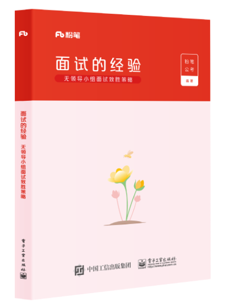 题名:《面试的经验:无领导小组面试致胜策略》 作者:粉笔公考 出版社:电子工业出版社 馆藏地点:桂林雁山校区种本书库、南宁东盟校区图书馆 索书号:D630.3/314 内容简介:本书共四章,内容包括:无领导小组面试全景、核心突破四大环节、分类击破五大题型、实战练习真题解析。