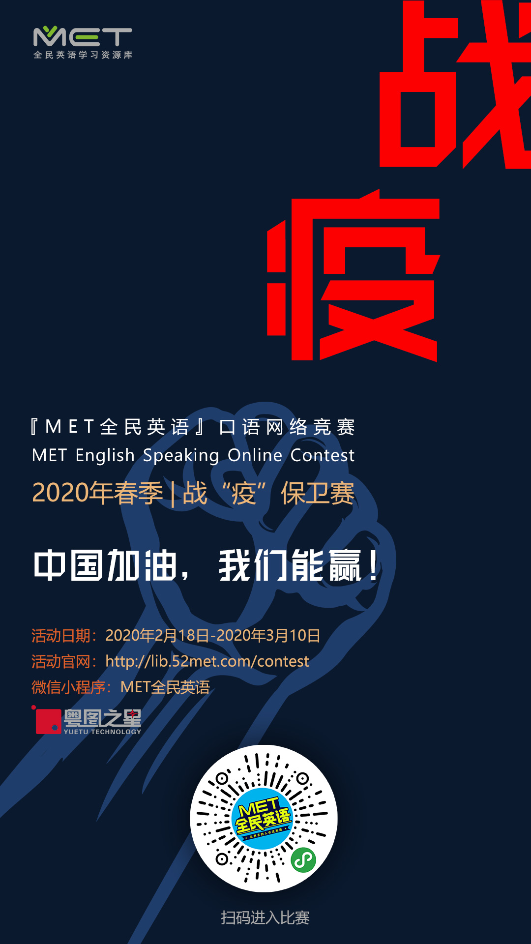 以赛战“疫“——关于举办「MET全民英语」口语网络竞赛2020年春季赛的通知