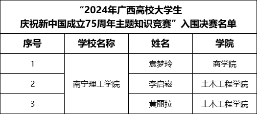 2024年广西高校大学生庆祝新中国成立75周年主题知识竞赛决赛入围名单揭晓