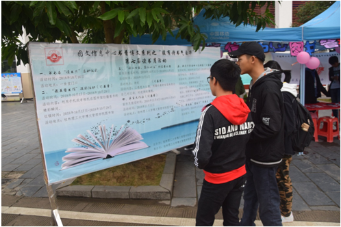 为丰富校园文化生活、推进我校书香校园的创建活动、给我校学子营造浓郁的读书氛围,为丰富校园文化生活、推进我校书香校园的创建活动、给我校学子营造浓郁的读书氛围,2018年10月16日中午,由我校图文信息中心主办、图文信息中心图书管理委员会(以下简称图管会)承办的第七届“读书月”活动启动仪式在学校一号食堂门前成功开展,图文信息中心第七届“读书月”活动正式拉开序幕。