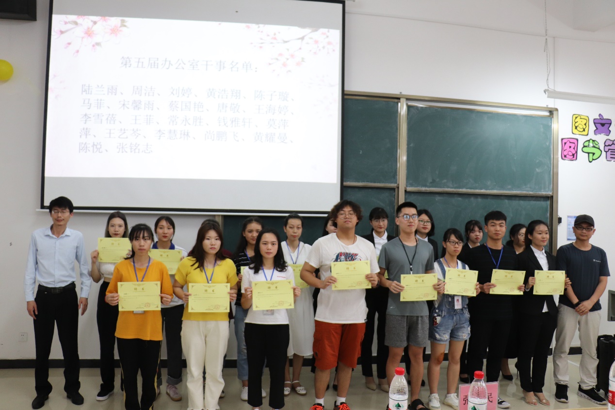 本次大会在主持人的致辞词中拉开了序幕。大会分为颁发干部干事聘书、宣布新一届干部名单和欢送会三个部分。首先,由主任、老师、老师和老师为第五届干部及干事颁发聘书,这是对他们工作的肯定,也给他们过去一年的工作画上一个圆满的句号。接着,欧冬梅老师宣布第六届的干部任职名单,从热烈的掌声中,不但感受到了大家对他们的祝贺,更是将期望寄托于新一届干部,希望图管会能够在他们的带领下有更好的发展。