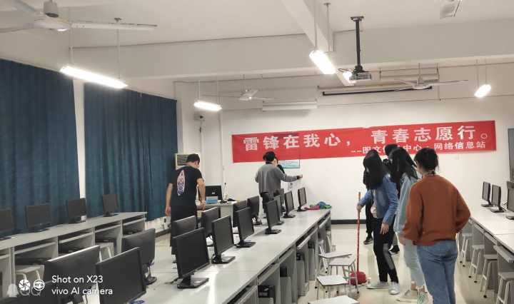 3月是全国学习雷锋月,为大力弘扬雷锋精神和“奉献、友爱、互助、进步”的志愿服务精神,传承雷锋同志艰苦朴素的优良作风,3月14日晚,图文信息中心网络信息站协同信息工程学院学生会志愿者们在学校四栋教学楼开展为实验机房清扫卫生志愿服务活动,用实际行动诠释雷锋精神。