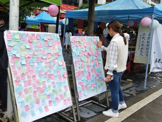 本次评议活动采取现场征求意见和建议的活动形式。活动要求参与活动的同学们将“自己心中的图书馆”写在便利贴上,然后亲手贴在展板上,把对图书馆的意见和建议用一张张便利贴记录下来,为图书馆的发展献言献策。同学们热情响应,积极参与活动。活动结束后,图管会成员将把收集到的活动参与者的意见和建议,反馈给我校图文信息中心图书馆的老师们,争取把合理化的意见和建议落实到图书馆未来发展中。