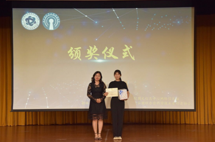 4月29日晚上,图文信息中心网络信息站联合大学生社团联合会科学技术爱好者协会举办的第二届校园网络安全文化节之“网络安全知识进校园”活动颁奖典礼在报告厅顺利举行。图文信息中心网络信息站指导老师、图文信息中心老师张进、大学生社团联合理事会成员莹和刘秋凤出席本次颁奖活动。
