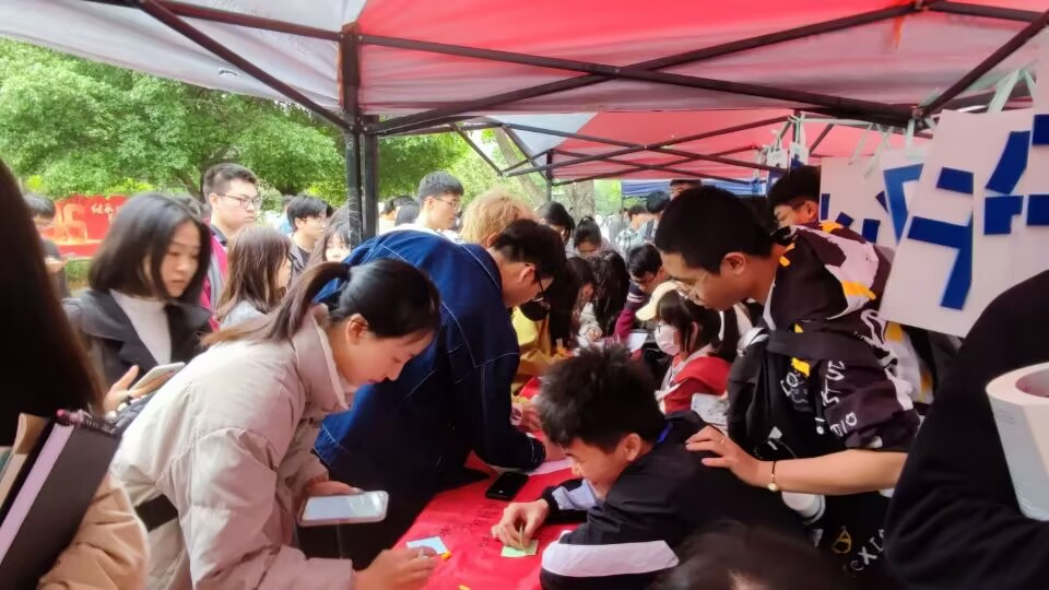 本次活动分为签名、写寄语、合影留念三个步骤。首先,在“悦读生命之花,聆听心灵之语”活动横幅上签下自己的名字;然后领取一张图管会提供的便签纸,并在上面写下自己对新学期的目标和展望;最后,参与者将写满寄语的便签贴在活动展板上,并与其合影留念。本次活动得到了广大同学的积极响应,活动现场热闹非凡,大家积极踊跃报名。