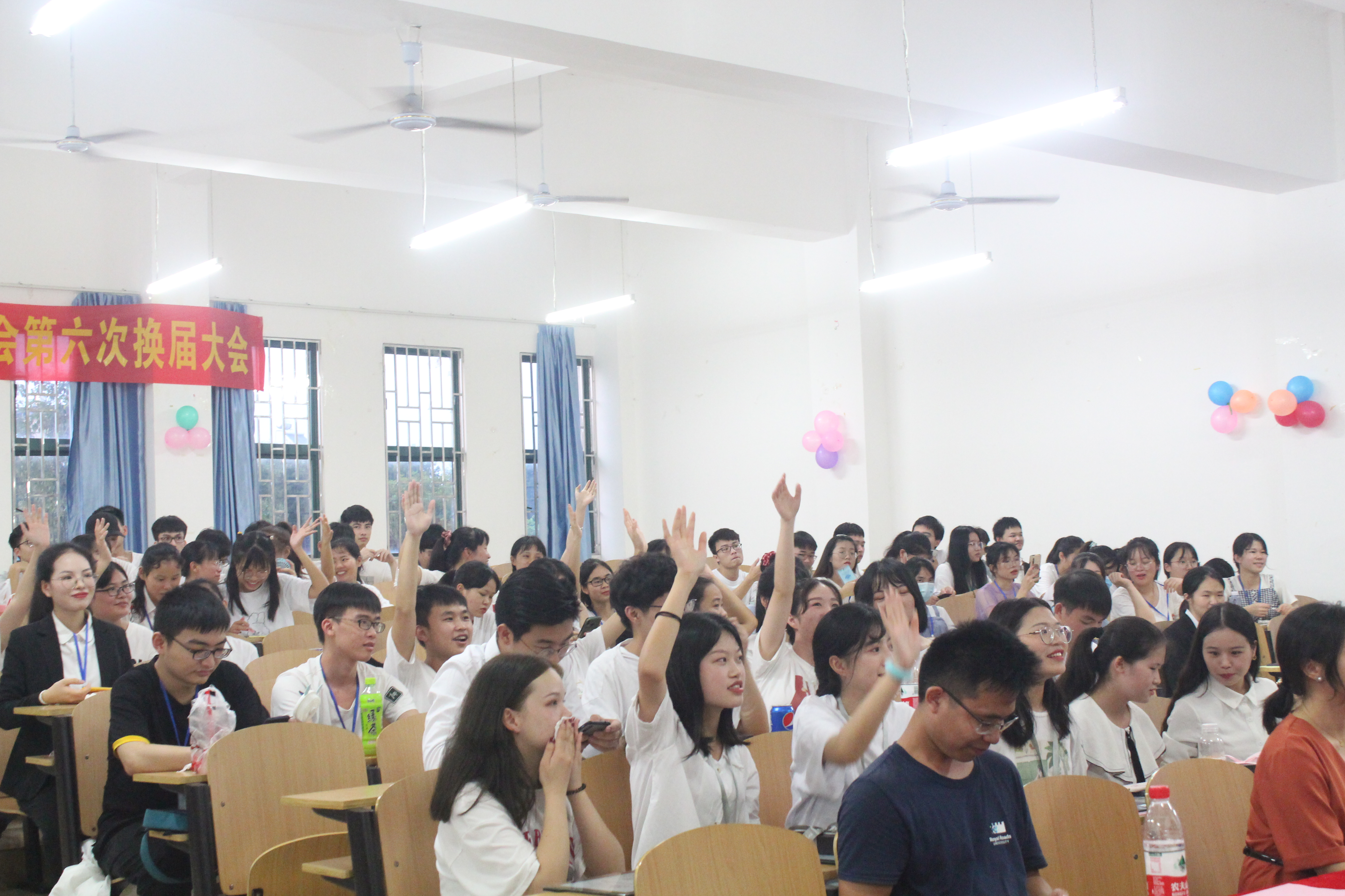 大会在主持人的致辞中拉开序幕。本次大会主要分为颁发聘书、公布新一届干部名单和欢送会三个环节。首先,老师为第六届干事及干部颁发聘书并送上礼品,对他们一年来的工作表示肯定。紧接着,主持人公布第七届干部名单,在图书馆老师及图管会全体干事的共同见证下,第六届会长与第七届理事会成员顺利完成交接仪式。换届,是结束也是开始。新一届骨干承前启后,感恩过去一年的付出与收获,未来初心不改,矢志不渝。交接结束后,指导老师对本次换届大会进行了总结,同时也对图管会的工作给予了高度肯定。欢送环节中,各部门精彩的节目汇演,将活动推向高潮。最后,第六次换届大会在主持人的宣布中圆满落下帷幕。