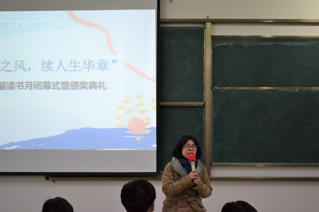 本次活动由吴冰、杜慧涛两位主持人主持。活动伊始,主持人为大家介绍到场的嘉宾:图管会指导老师、图书馆老师、朱亚俊;并宣布“漫游书海,取其精华”书籍摘抄分享活动的获奖名单。紧接着,获奖同学依次上台分享了自己的读书心得,并由到场嘉宾为获奖者们颁发荣誉证书和奖品。理事会成员王高杰与指导老师对本次“读书月”活动进行了回顾与总结,并对参与本次活动的同学们表达了感谢与祝福。第九届“读书月”闭幕式暨颁奖典礼圆满结束,为本次“读书月”活动画上了完美的句号。