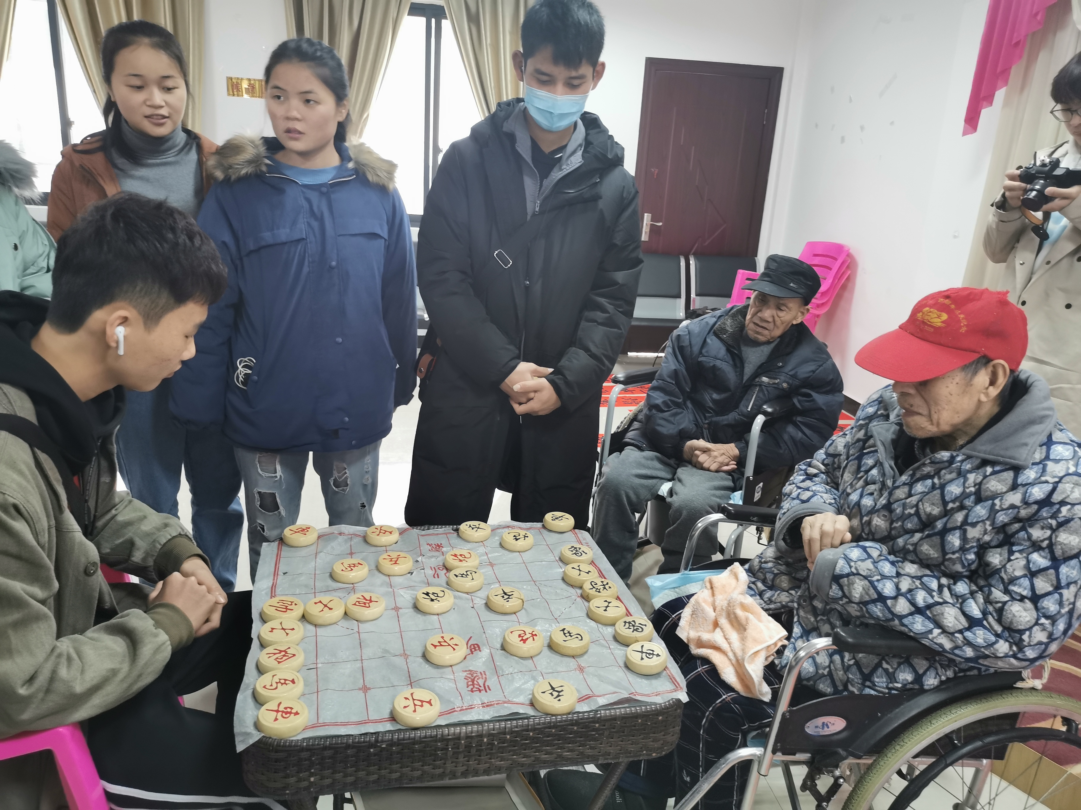 12月27日早上,图管会与书画协会的同学们便搭乘5路公交车前往桂林市雁山区幸福颐养院。同学们先对养老院进行了清扫,之后便投入到关爱老人的活动中,同学们为老人们写了对联,与老人们一起下象棋,一起剪窗花,一片欢声笑语,为养老院增添了一份温馨。在同学们与老人聊家常的过程中,每当聊起自己的孩子时,老人们总是在夸赞自己的儿女,希望孩子们能过的幸福,脸上也洋溢着幸福。