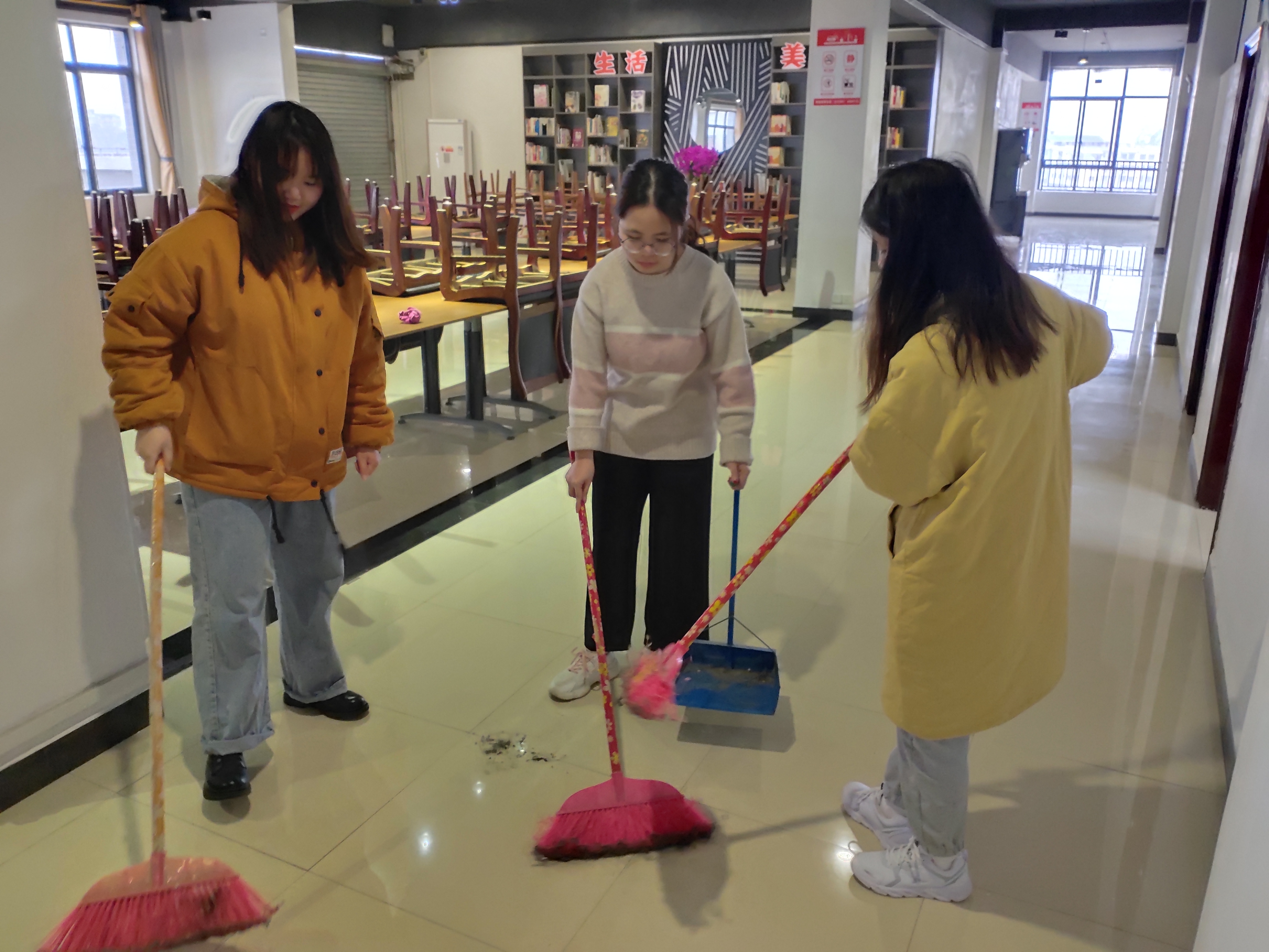 为保持一个干净整洁、优美舒适的阅览环境,营造“扬尘迎光,书香满院”的学习氛围,1月6日,图文信息中心图书管理委员会(以下简称:“图管会”)在图书馆举行志愿大扫除活动。