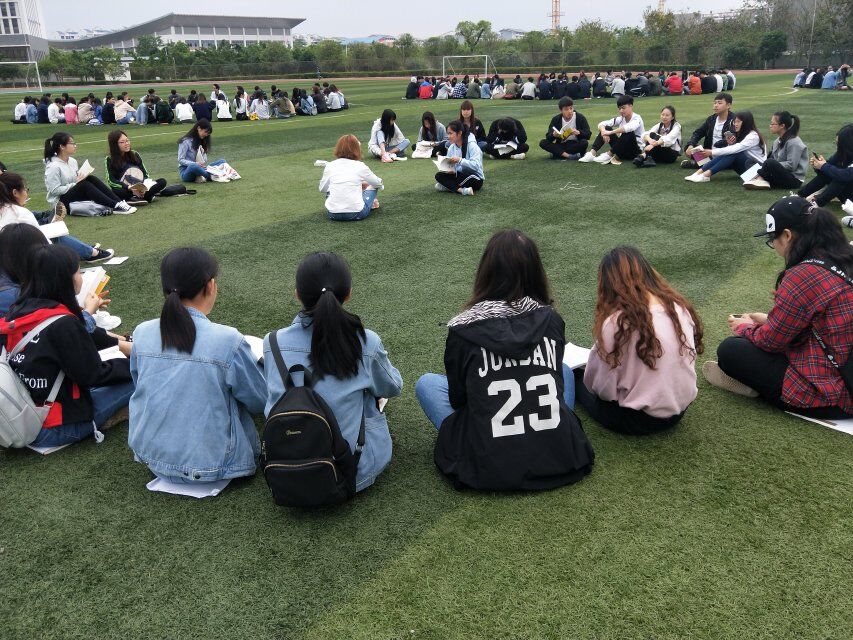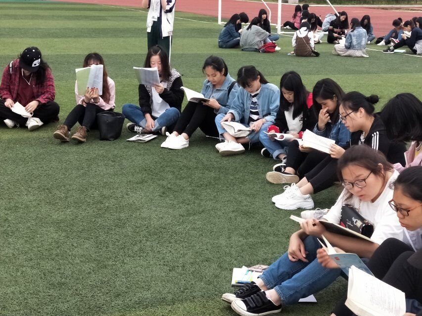 本次活动由图文信息中心学生管理委员会(简称图管会)承办。本次晨读活动要求参与同学由四人组成一组,六个小组围成一个圈,带着提前从图文信息中心借阅的图书,从中选取一段精彩的文字内容,在阳光足球场上大声朗读。然后,圈里各小组的同学互换图书,再进行学习交流。最后,由图管会会长梁钟梅随机抽选2位同学来为大家朗读以及与同学们分享自己的读书心得,为本次的晨读活动画下了圆满的句号。