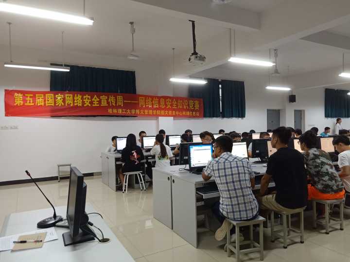 9月18日晚上7点,图文信息中心主办、网络信息站协办的第一届“网络信息安全”校园文化节之网络安全知识竞赛在4526、4528机房拉开帷幕,全校两百余学生参加了此次竞赛活动。