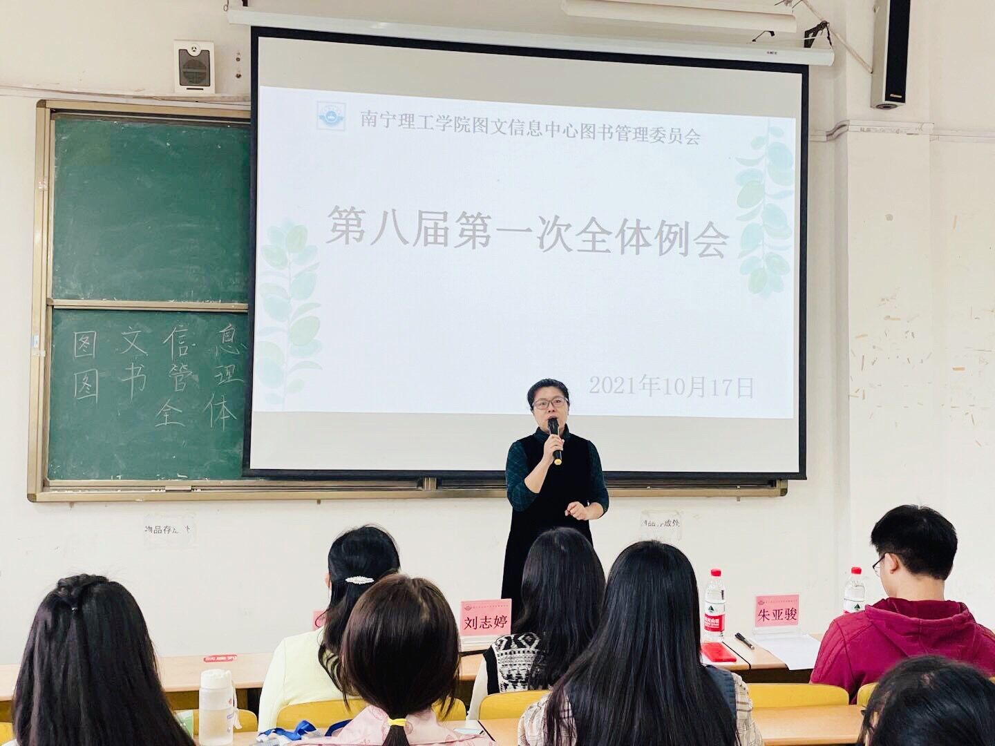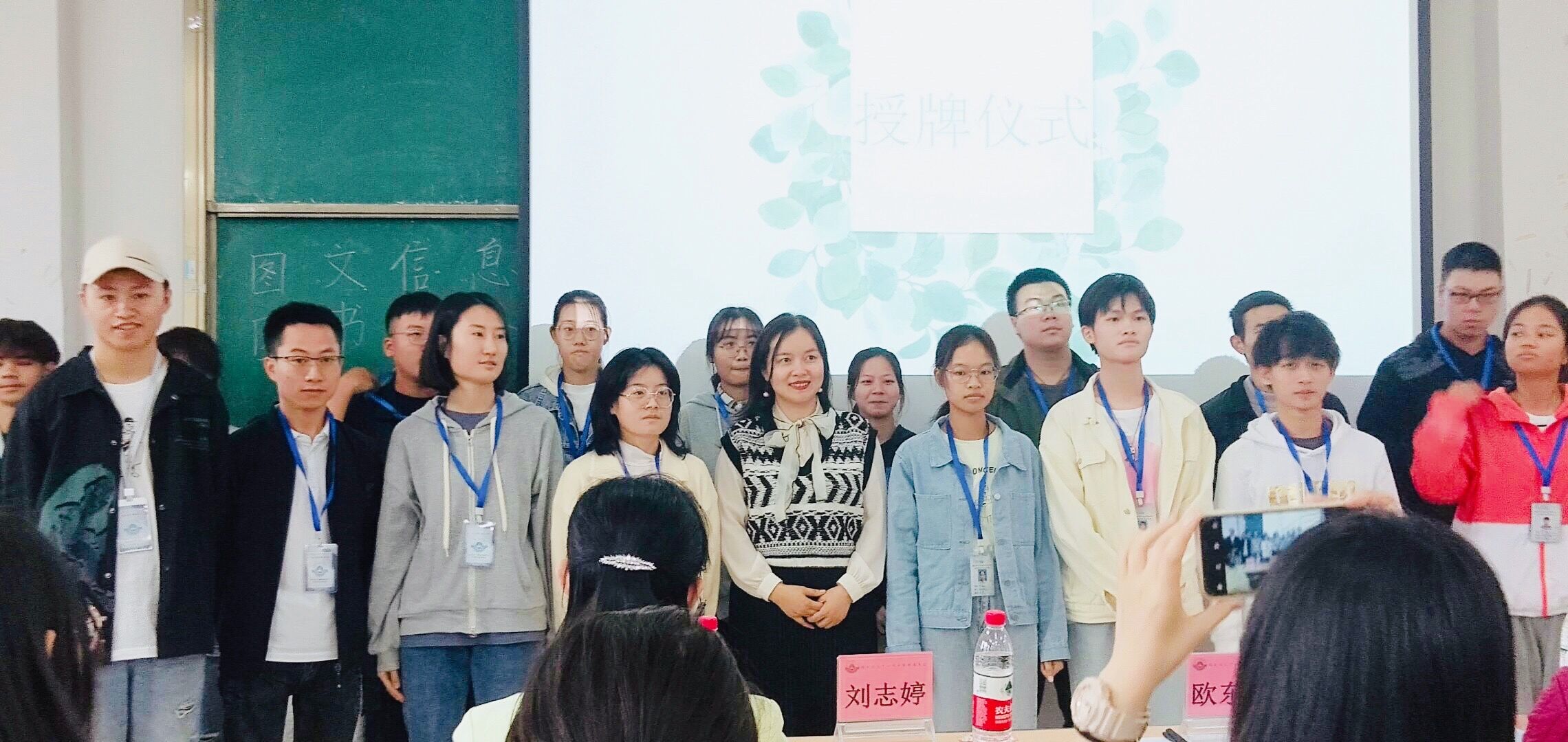 本次例会分为三大环节:授牌仪式、理事会发言、指导老师发表寄语。首先,老师们为各部门新干事依次授予工作挂牌,代表着干事们正式加入图管会这个大家庭。其次,理事会成员徐艳爽进行发言,表达了对新干事们的期许和图管会工作中的注意事项。最后,指导老师对新成员的加入表示祝贺,同时也强调了干事们肩负的责任并对其寄予深深的厚望。