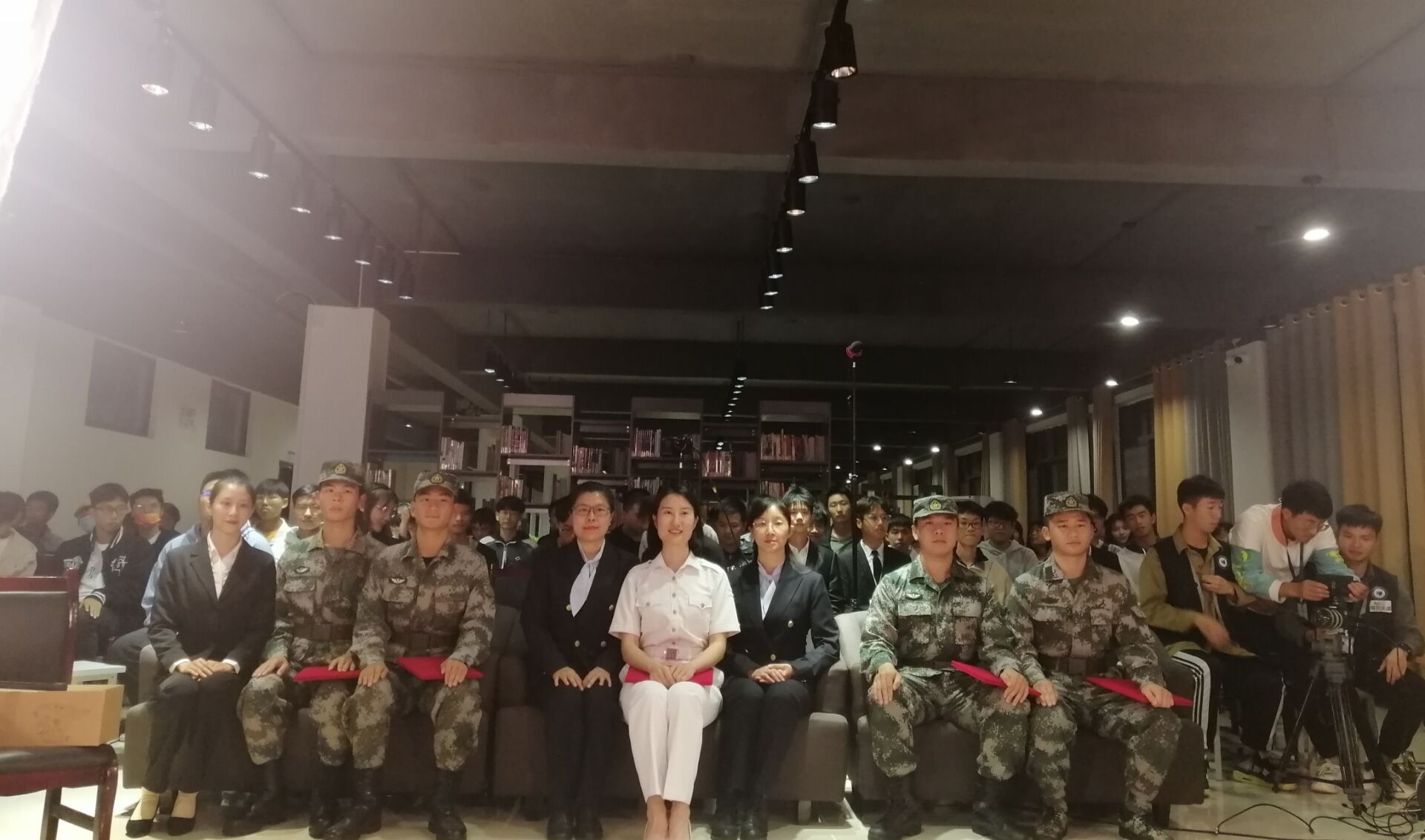 不见征戎儿,岂知关山苦。图文信息中心图书管理委员会(以下简称:“图管会”)联合校新闻中心于10月17日晚在图书馆四楼举办第二十七期“读书沙龙”活动。本次活动采用现场举行线上直播的方式,邀请五位退伍复学的新同学“以青春履行使命,用热血报效国家“为主题分享他们的军旅生涯。出席本次活动的有图文信息中心图书馆老师、退伍复学的新同学和图管会全体干部及干事。