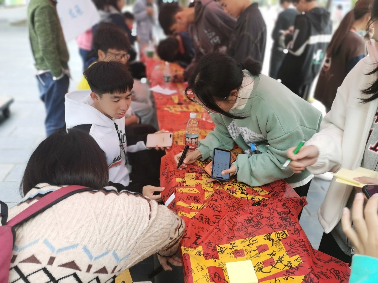 “最是书香能致远,腹有诗书气自华”。迎着灿烂的朝阳,第十届“读书月”启动仪式拉开序幕,本次活动开展过程中同学们积极参与其中,在留言墙分享他们对新学期的祝愿并在横幅上签上自己的姓名。